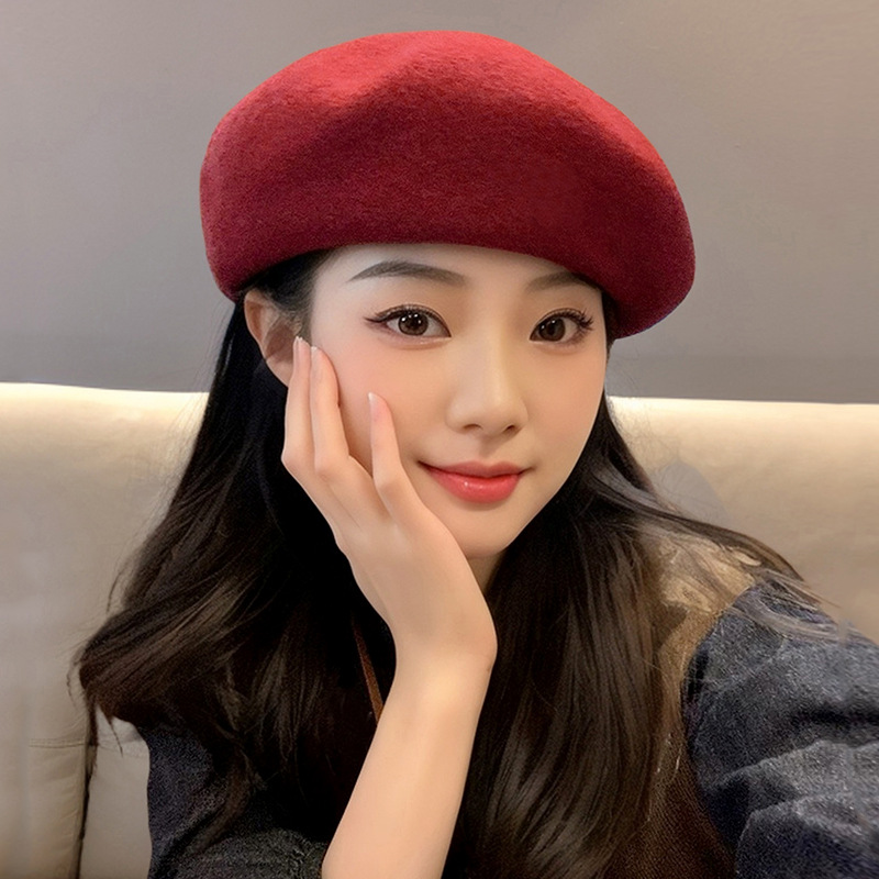 ダブルサイズの純ウールのベレー帽の女性秋冬の新型は顔の小さい毛が現れます。