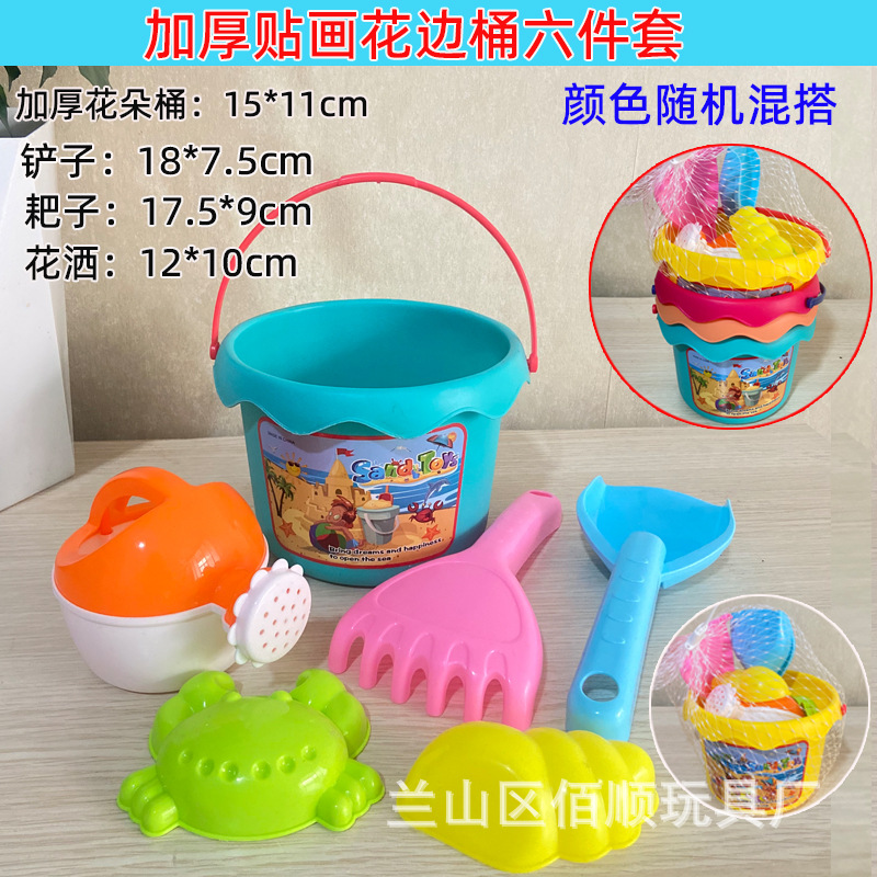 第二款六件套包含:一个桶,一体尖铲一把一体平铲一把三个海洋模具,网兜吊牌包装(为减少发货体积铲子+模具单独网兜包装,桶单独,到货后自行组装,介意者慎拍)