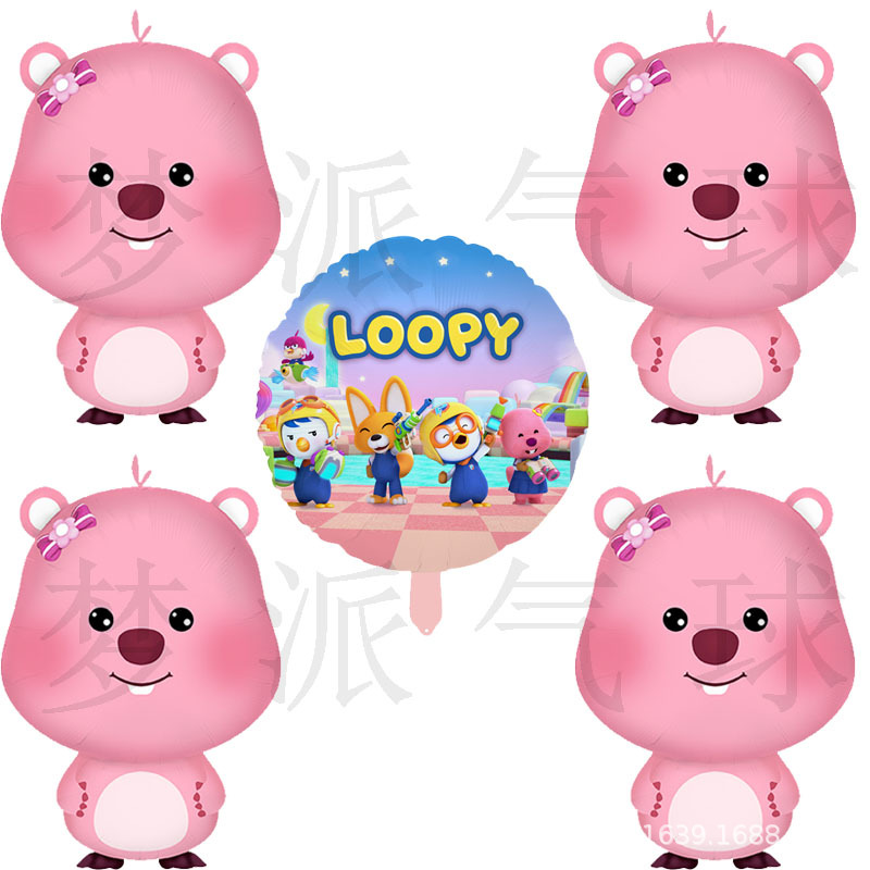越境新作ピンクルビloopyキャラクターアルミ膜風船子供誕生日パーティー装飾アレンジバッチ