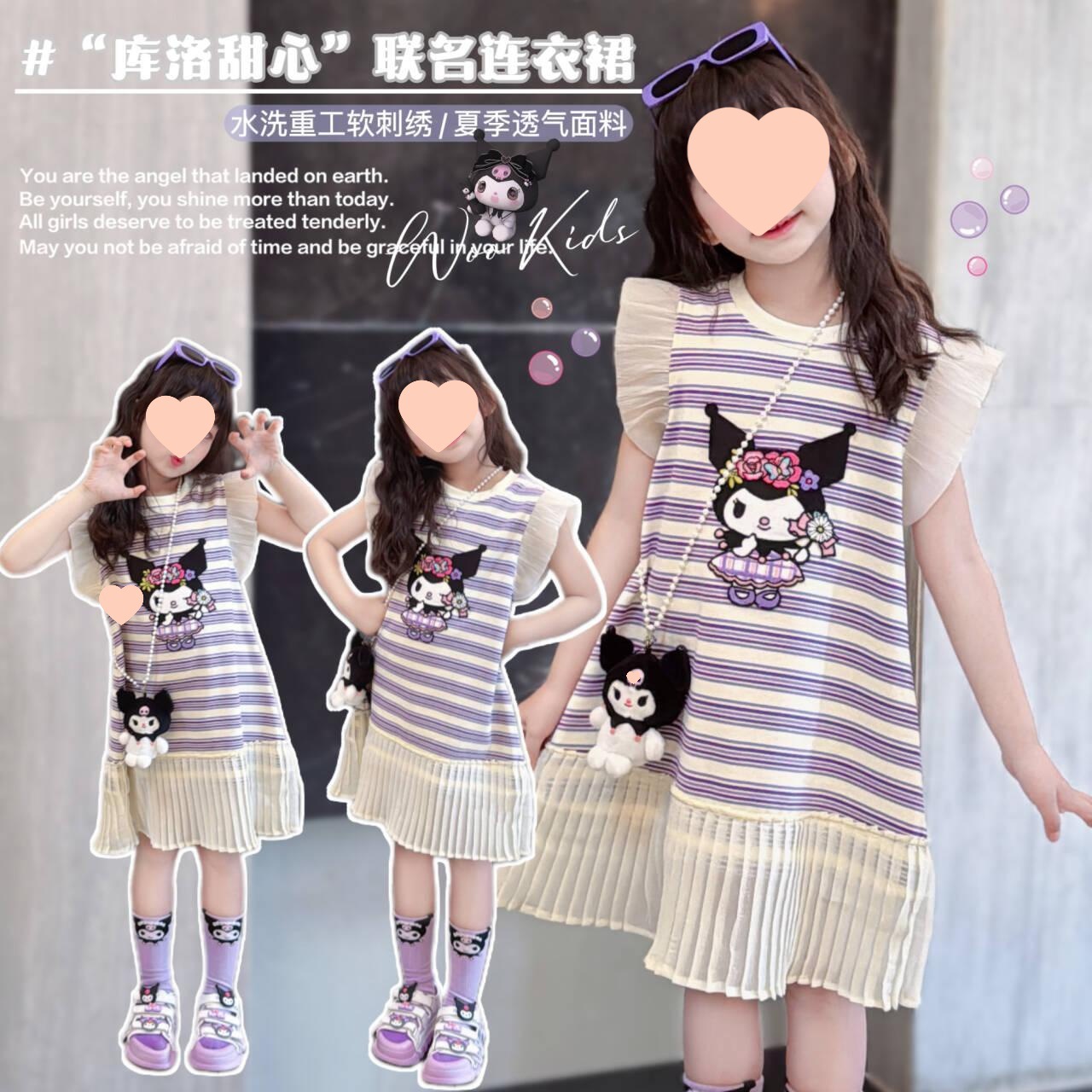 女の子の韓国版ファッションカジュアルなノースリーブのワンピースの中で大きい子供の夏の新型の洋気の漫画のストライプの王女のスカートの潮