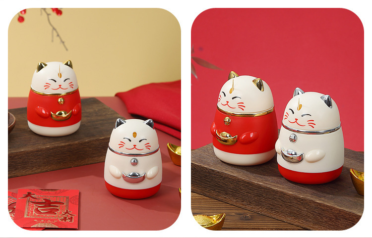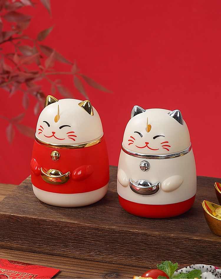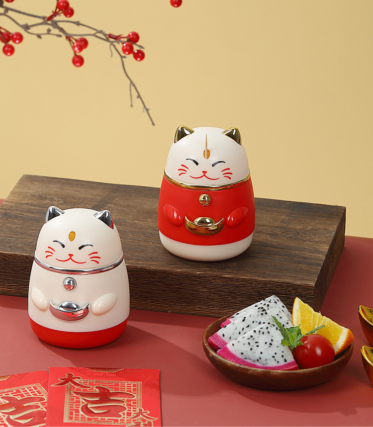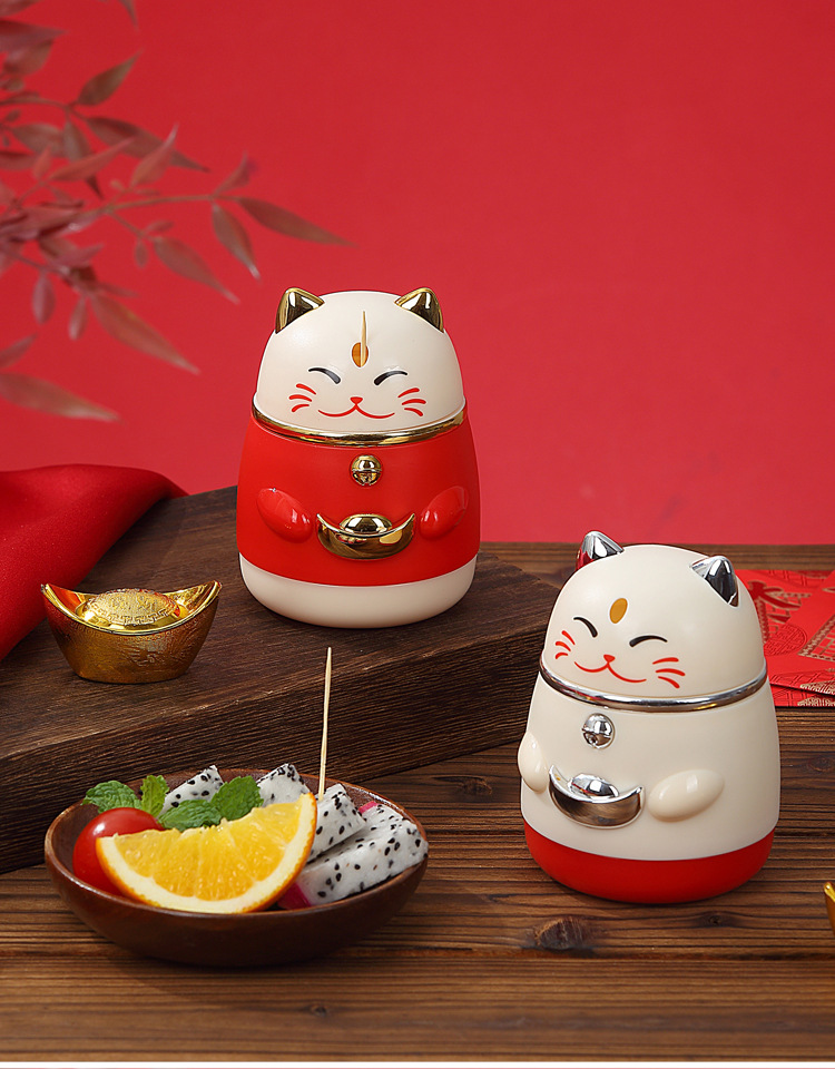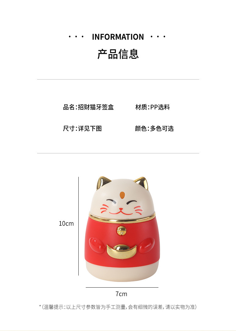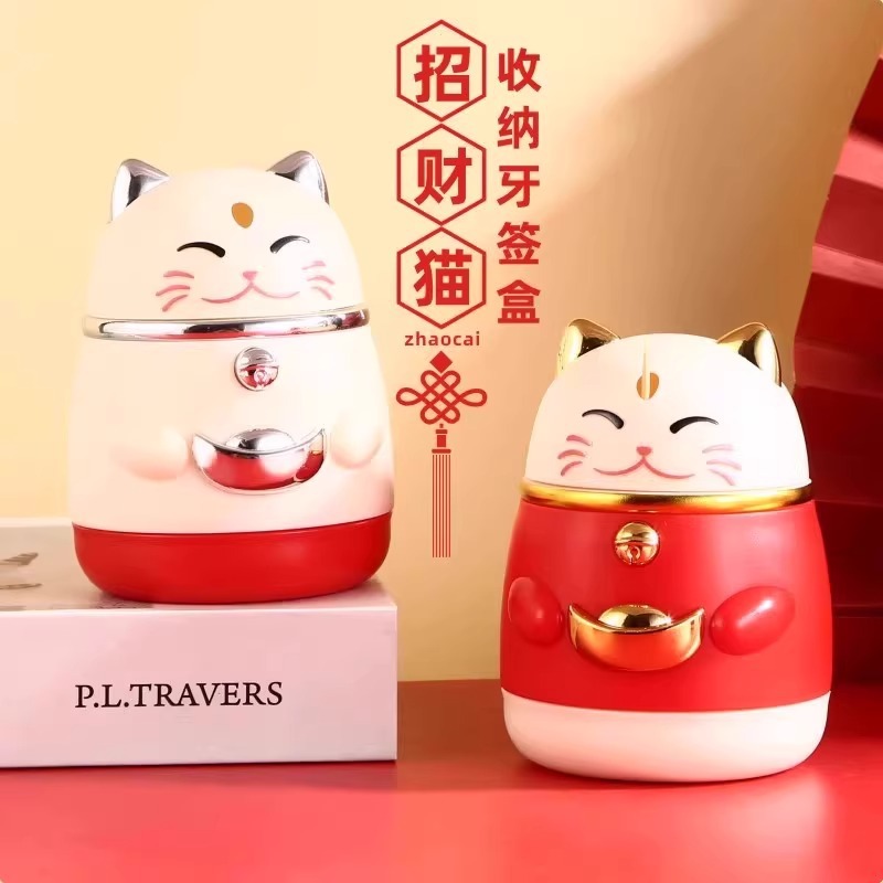 楊枝箱高颜値国潮漫画創意押圧式自動ポップアップ招き猫楊枝缶家庭用楊枝筒