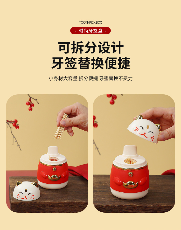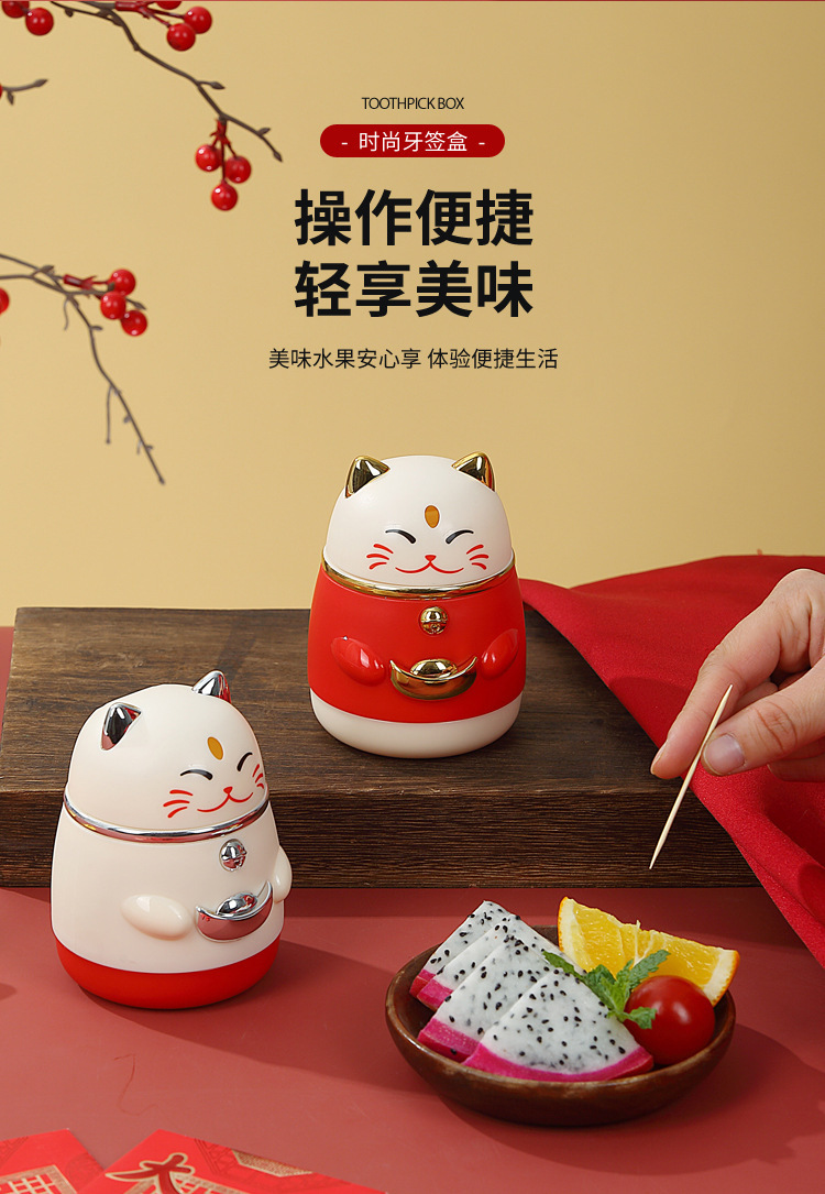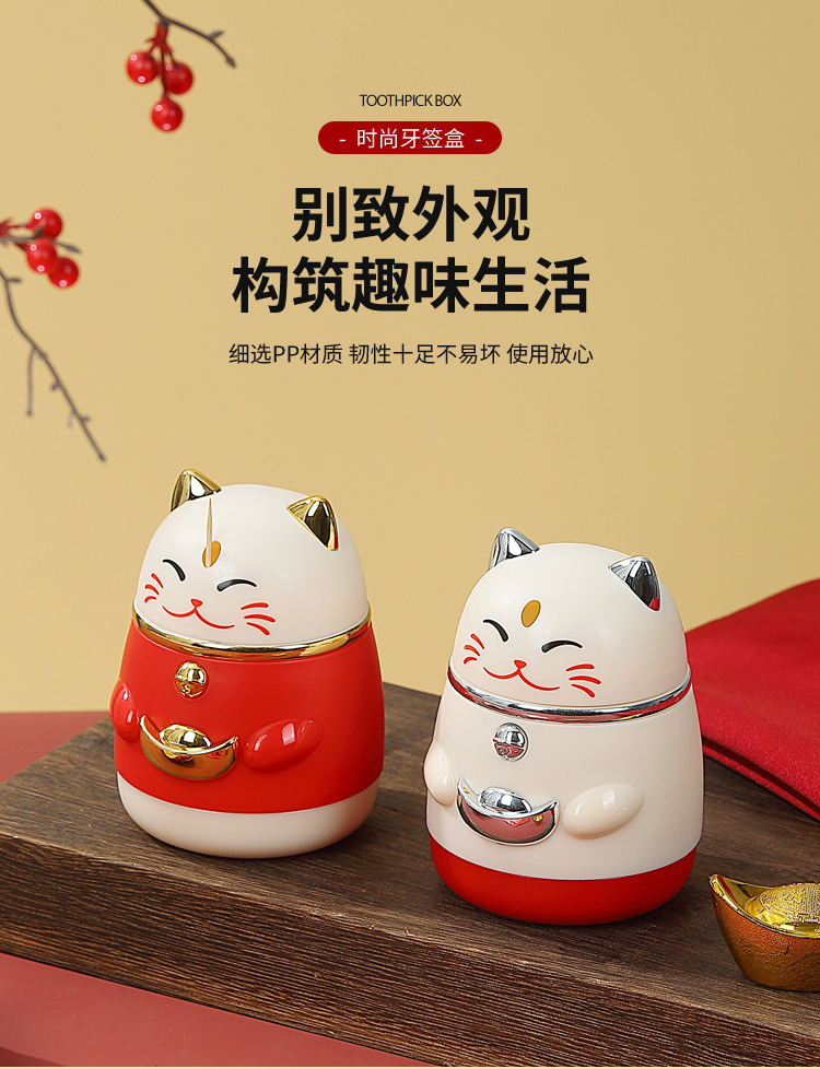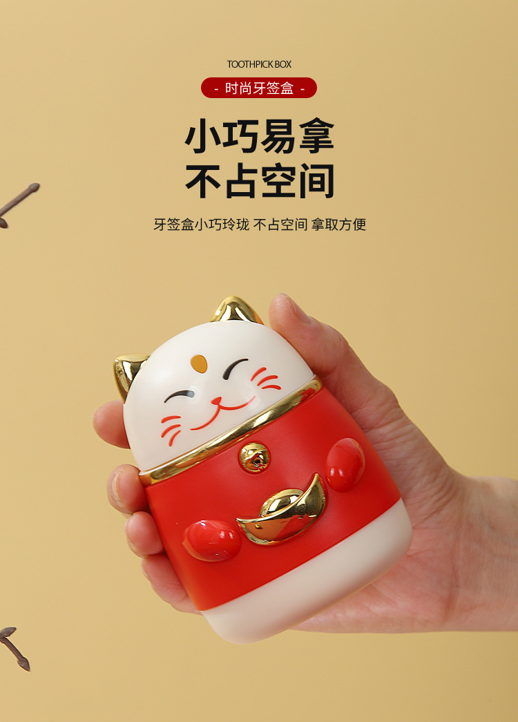 牙签盒高颜值国潮卡通创意按压式自动弹出招财猫牙签罐家用牙签筒
