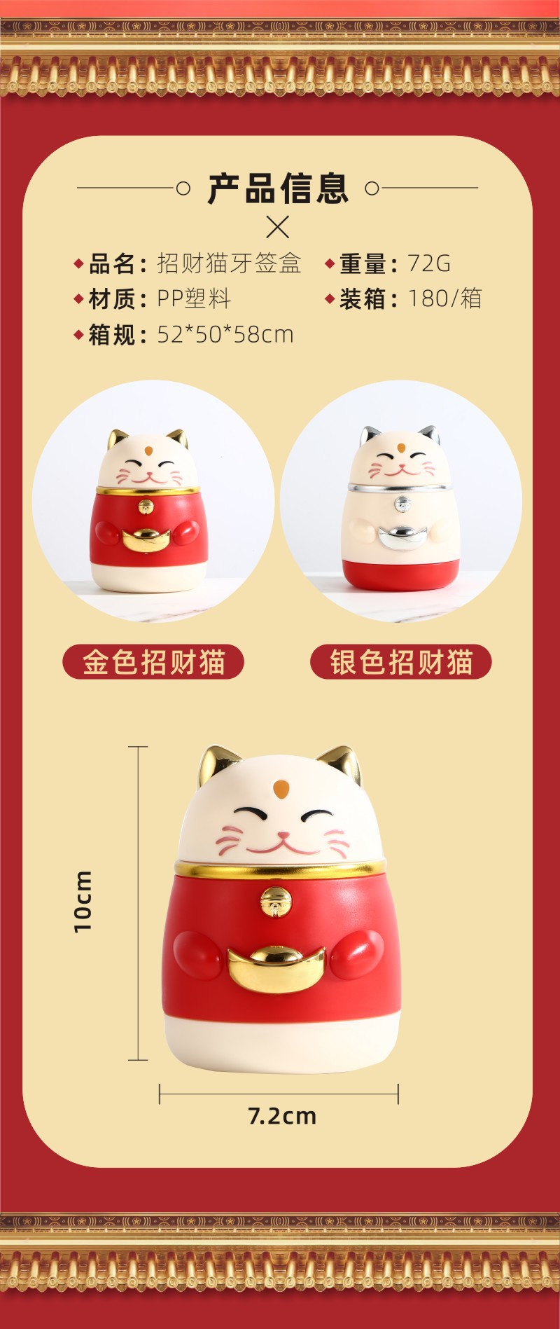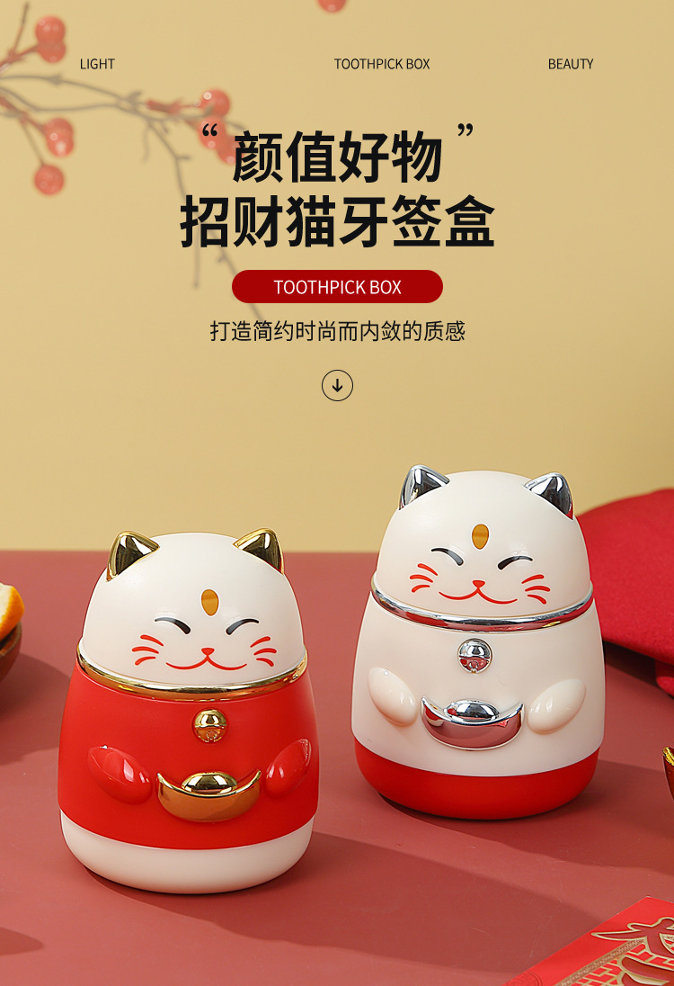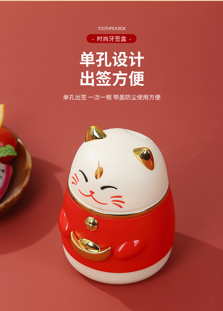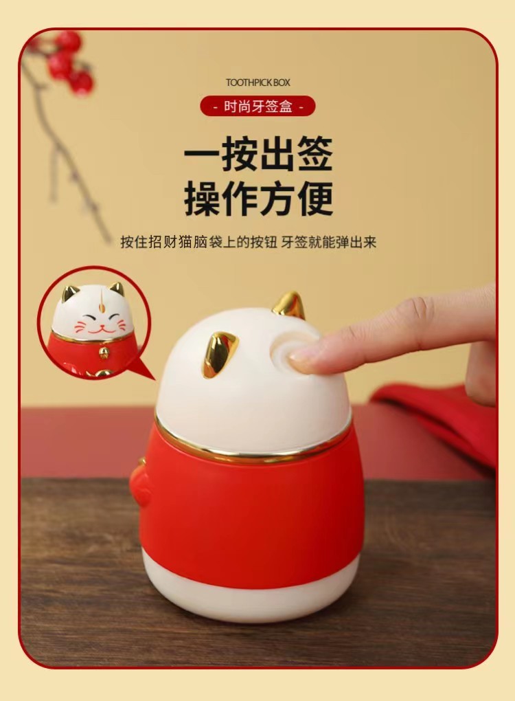 牙签盒高颜值国潮卡通创意按压式自动弹出招财猫牙签罐家用牙签筒