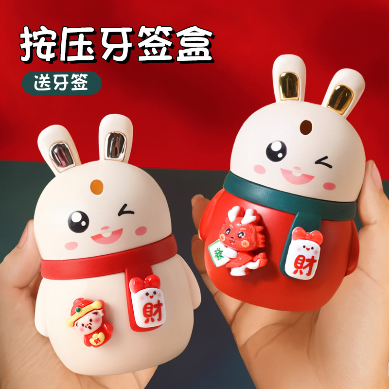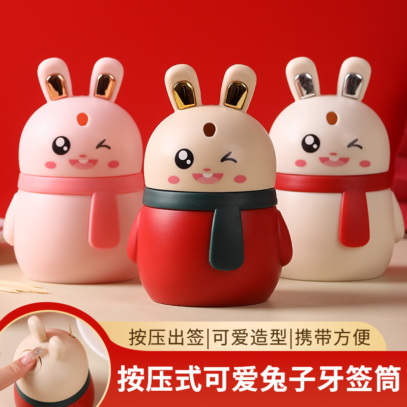 新款兔子牙签筒家用餐厅按压式自动弹出签萌趣可爱创意卡通牙签瓶