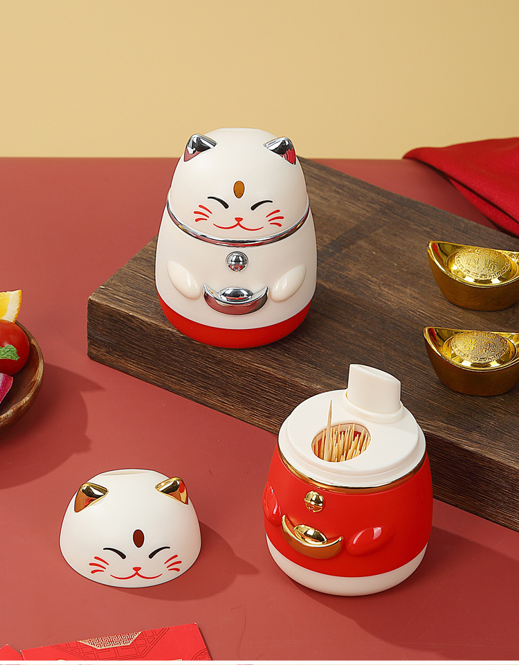 招き猫つまようじボックスは自動的にポップアップ家庭用高価値漫画プッシュ式プラスチックつまようじホルダークリエイティブ収納ボックス