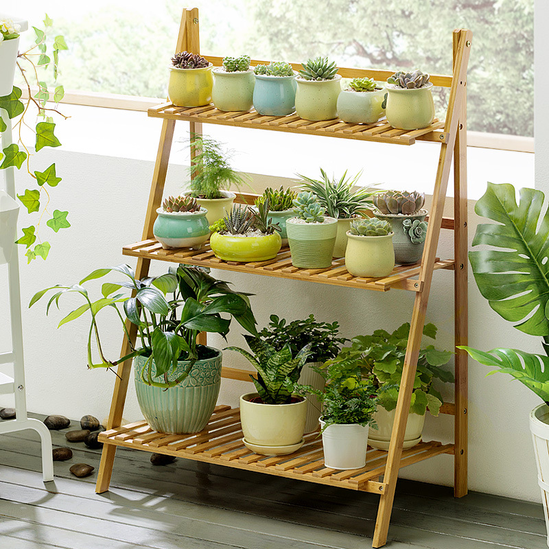 ベランダ用フラワースタンド、植木鉢スタンド、ベランダ用移動式、リビングルーム、ホール用、屋内木製折りたたみ式フラワースタンド