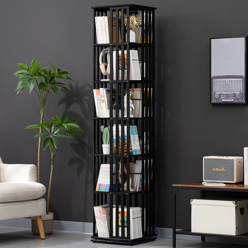回転本棚の本棚が床に落ちて壁に寄りかかって棚を置く子供のシンプルな収納棚のおもちゃ棚の展示棚が簡単で多層です。
