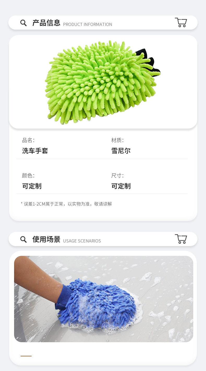 洗車手袋シェニール両面サンゴ虫拭き車泡手袋自動車清潔家事清潔手袋卸売り