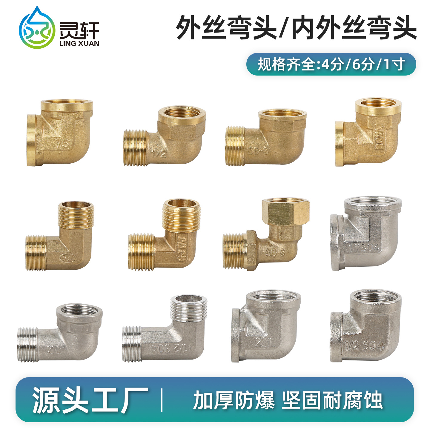 銅エルボ曲げ管4分6分直角45度90度内外糸内歯帯活接四分管継手水道継手継手