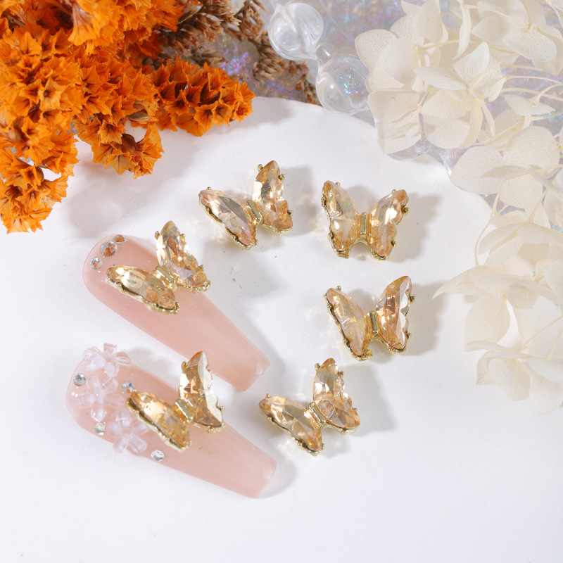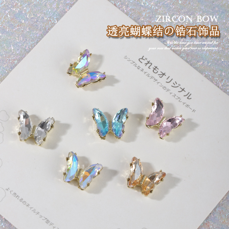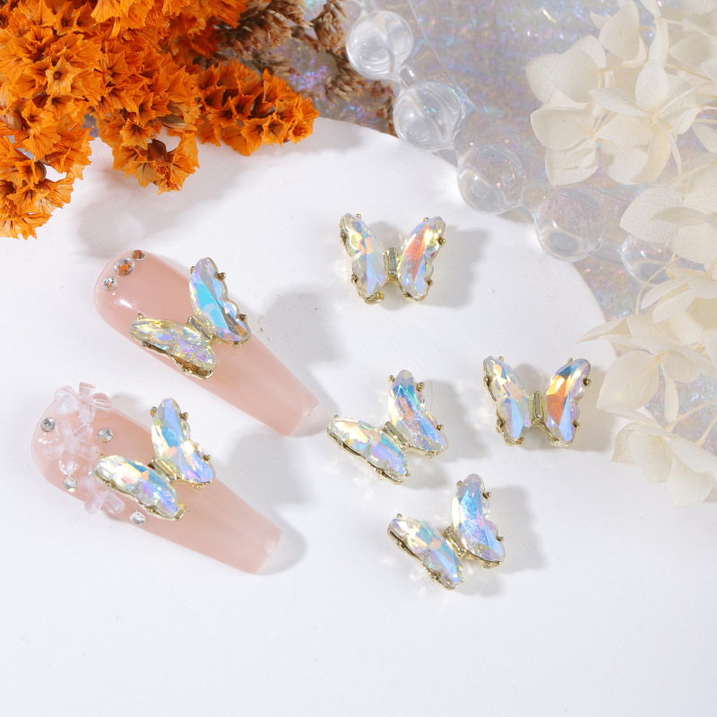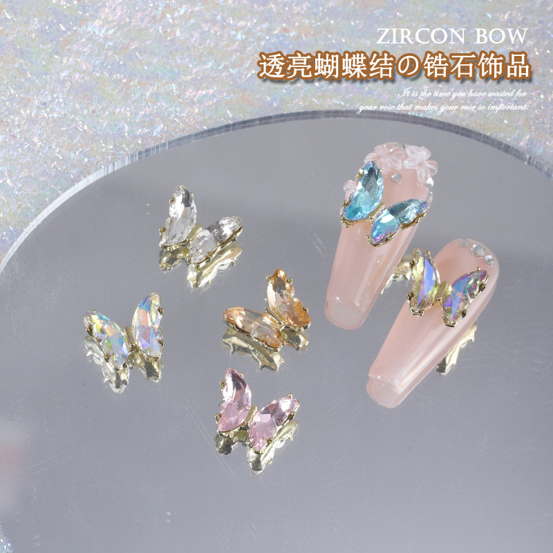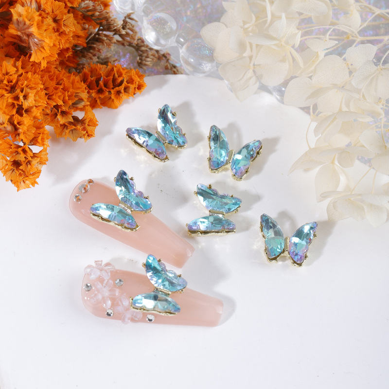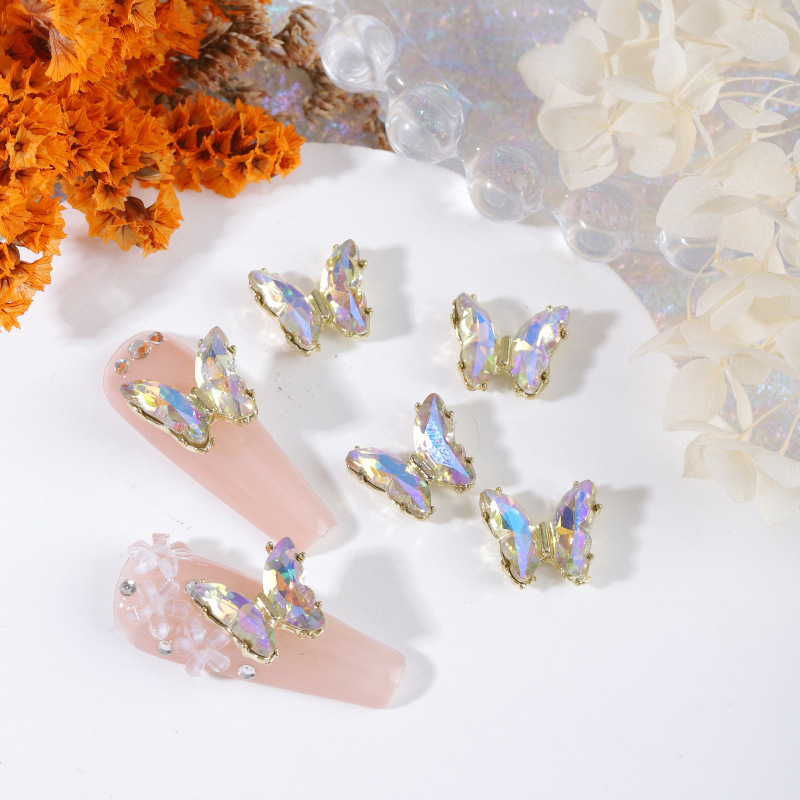 ネイル蝶アクセサリーネットレッドins風氷透極光蝶金属立体水晶蝶ネイルドリル卸売り