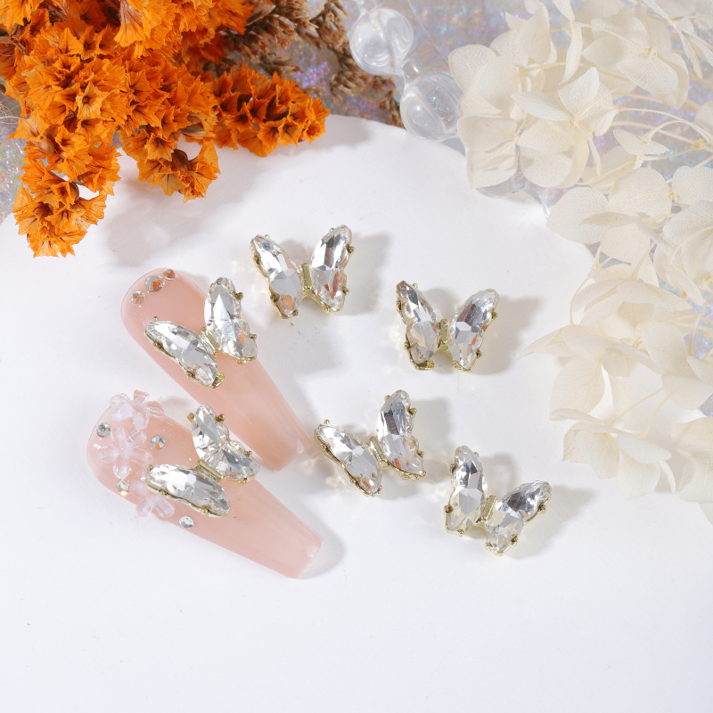 インターネット有名人ミニ指先蝶ネイルアートジュエリーフラッシュマーアザイズトライデントクリスタル小さな蝶ネイル装飾ダイヤモンド