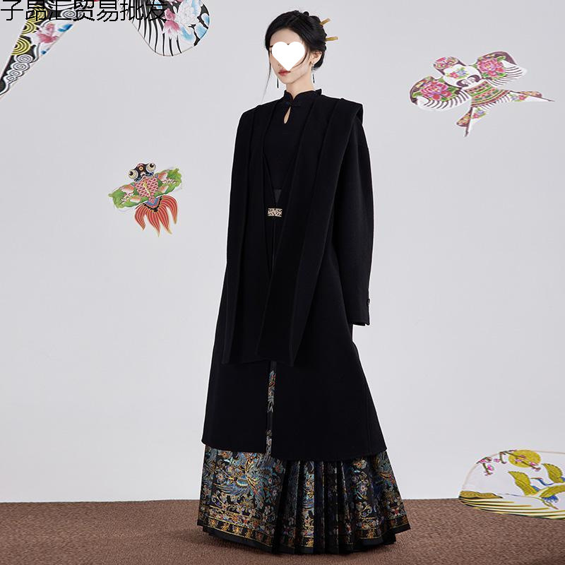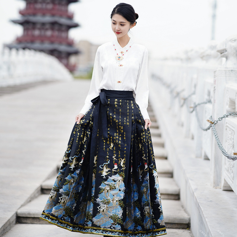 レトロ化粧花新中国式改良馬面スカート重工幻彩織金馬面スカート国風漢服女性日常通勤