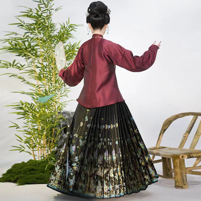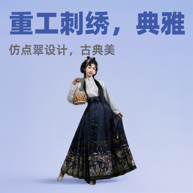 新商品明製漢服重工織金刺繍馬面スカート中国風織金女通勤模造化粧花馬面スカート