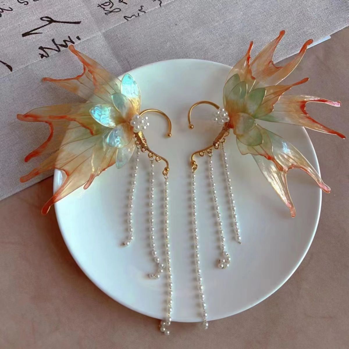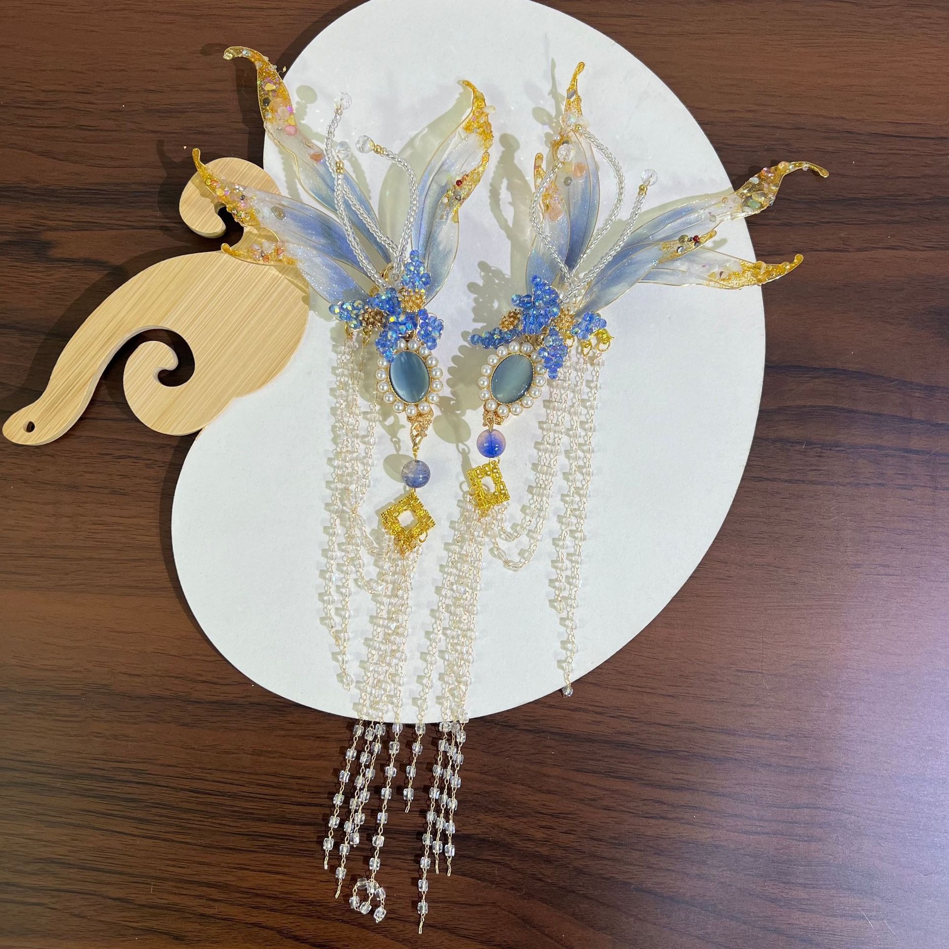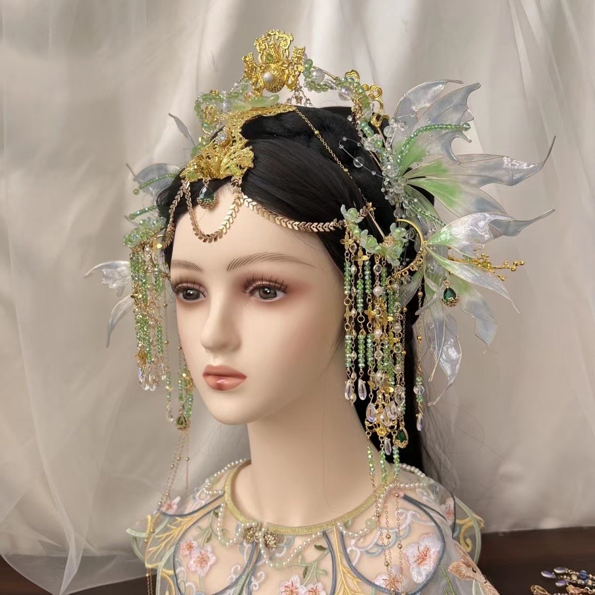 超仙流蘇髪冠古風髪飾り敦煌漢服頭飾り神女飾り人魚姫髪冠耳掛けセット