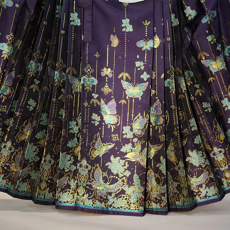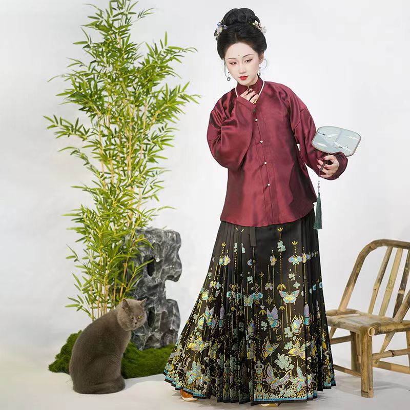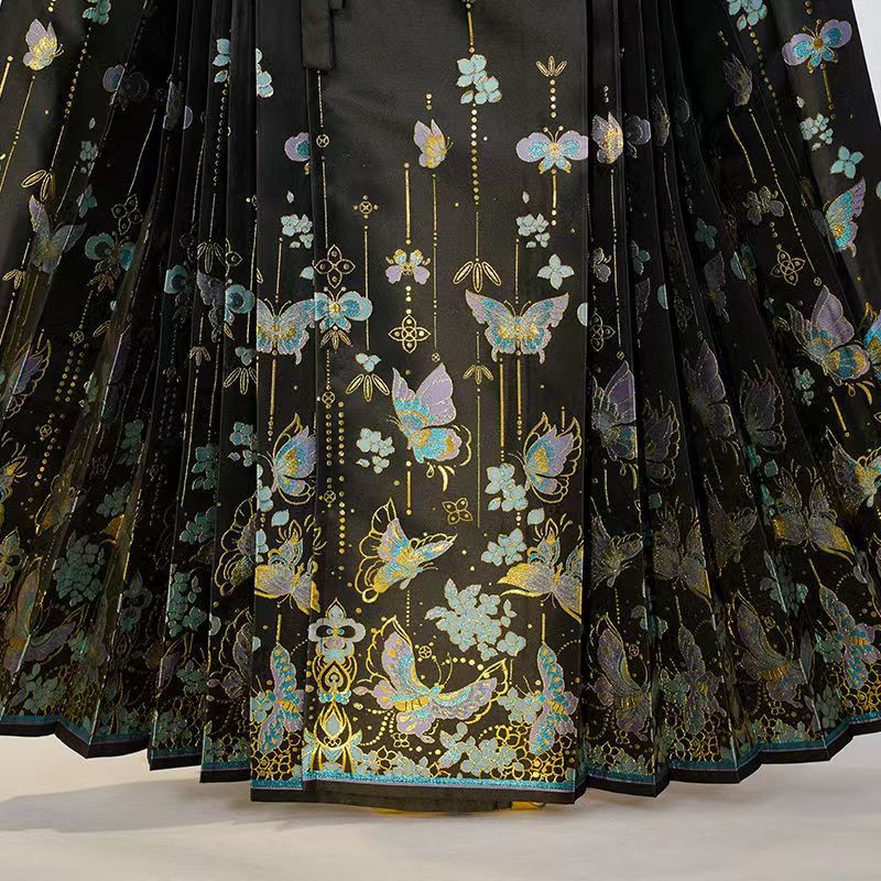 明製の漢服は金の化粧の馬のスカートを編みます。