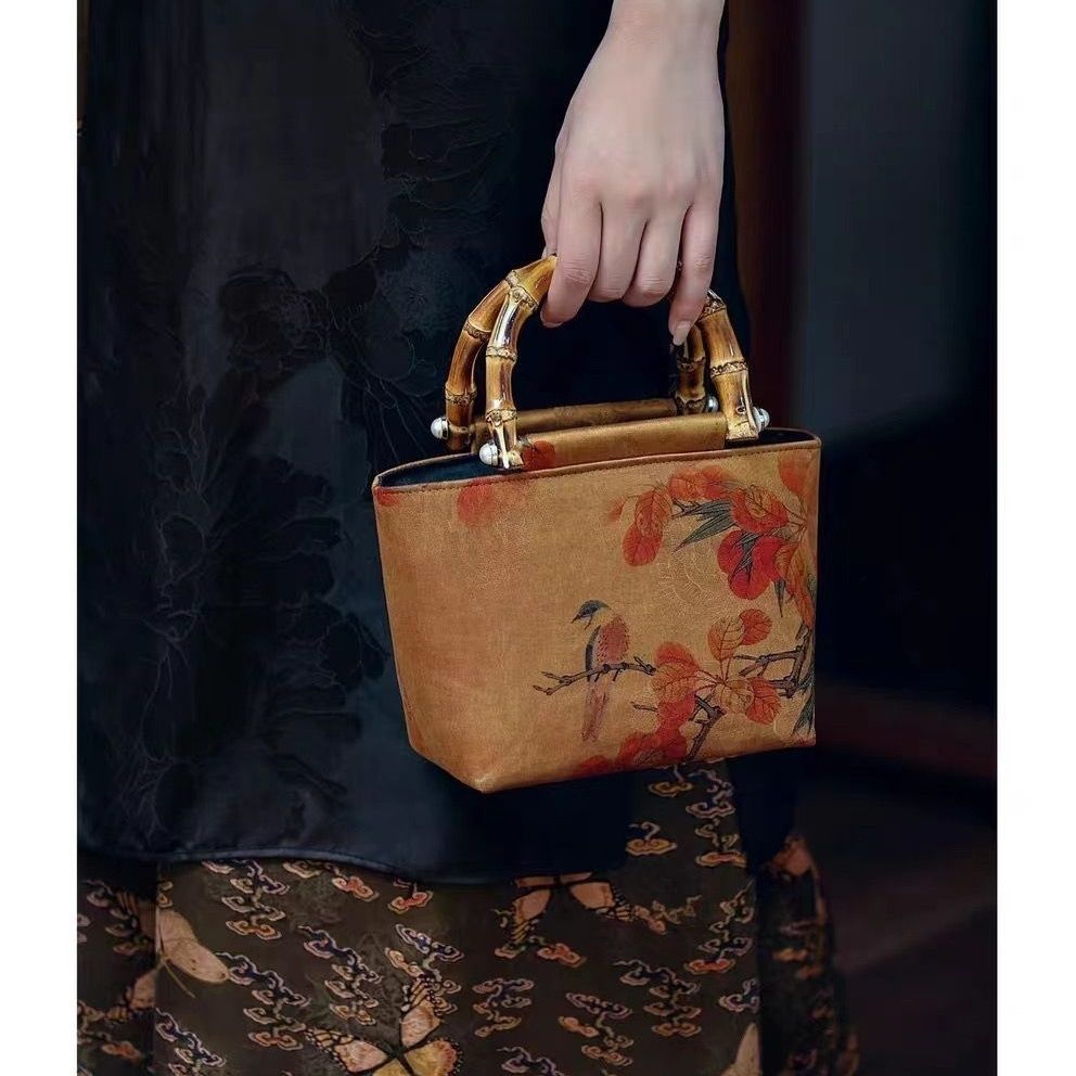 オリジナルデザイン香雲紗竹節チャイナドレスハンドバッグ新中国風レトロ漢服竹柄ハンドバッグ女性ir