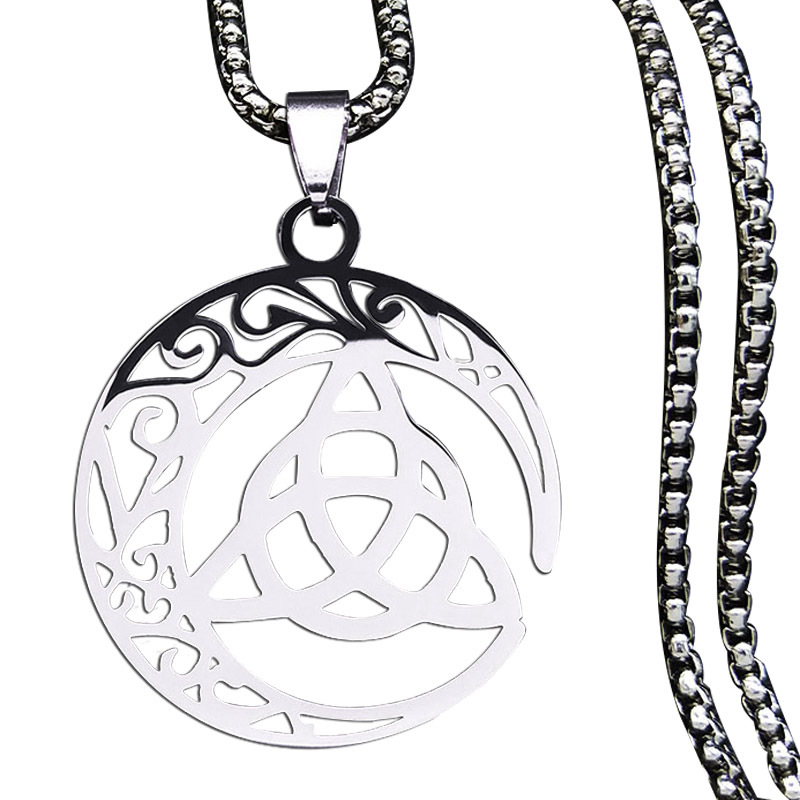 国境を越えた新しいステンレス鋼中国結ケルト三位一体ペンダントアイルランド月ネックレス男性アクセサリー