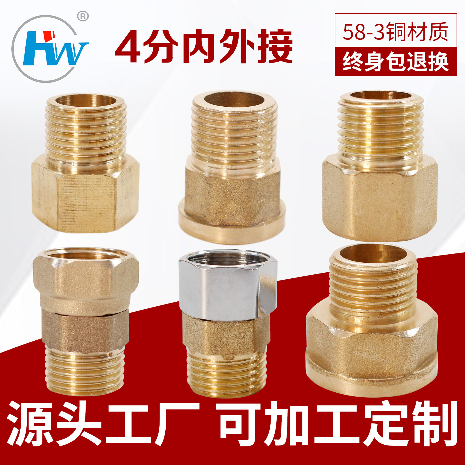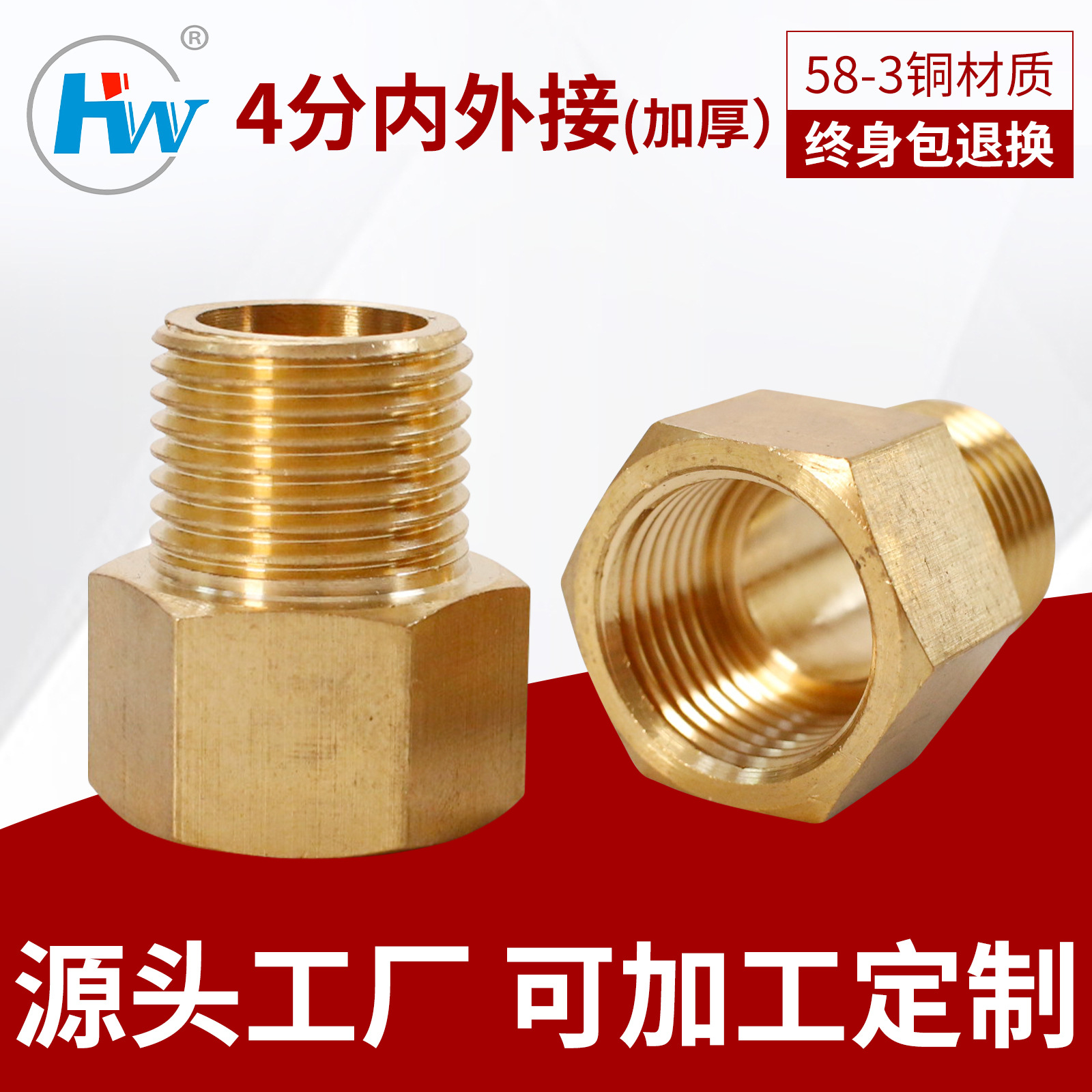 【壮大ブランド】4分50g印字内外糸継手銅内外接続直接メーカー直販
