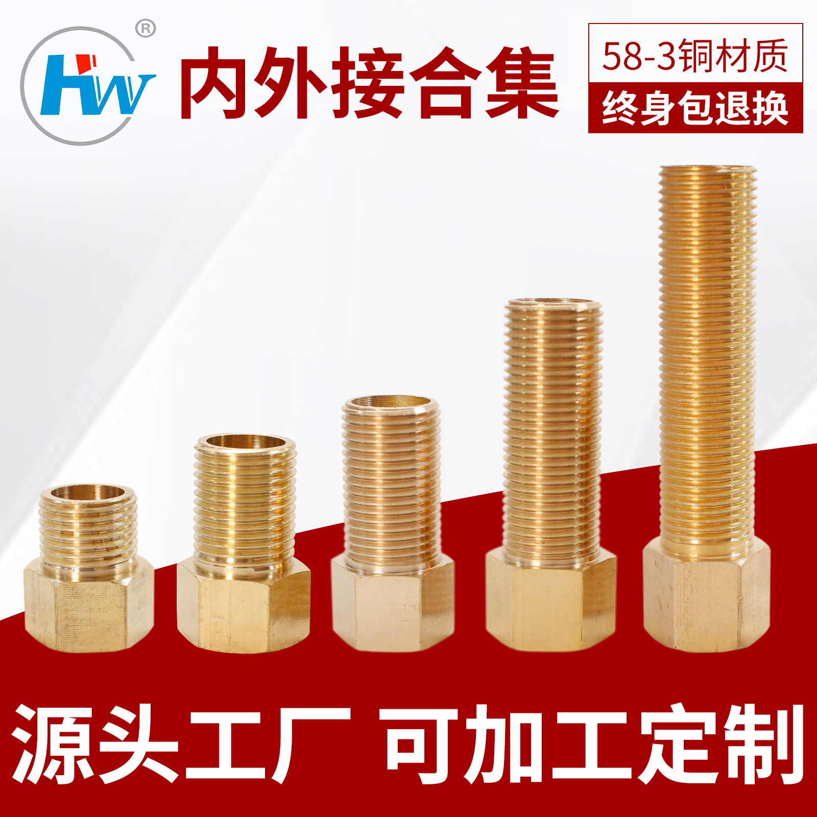 クロスボーダー供給1/2延長銅内外糸継手水暖直接部品加工工場直販