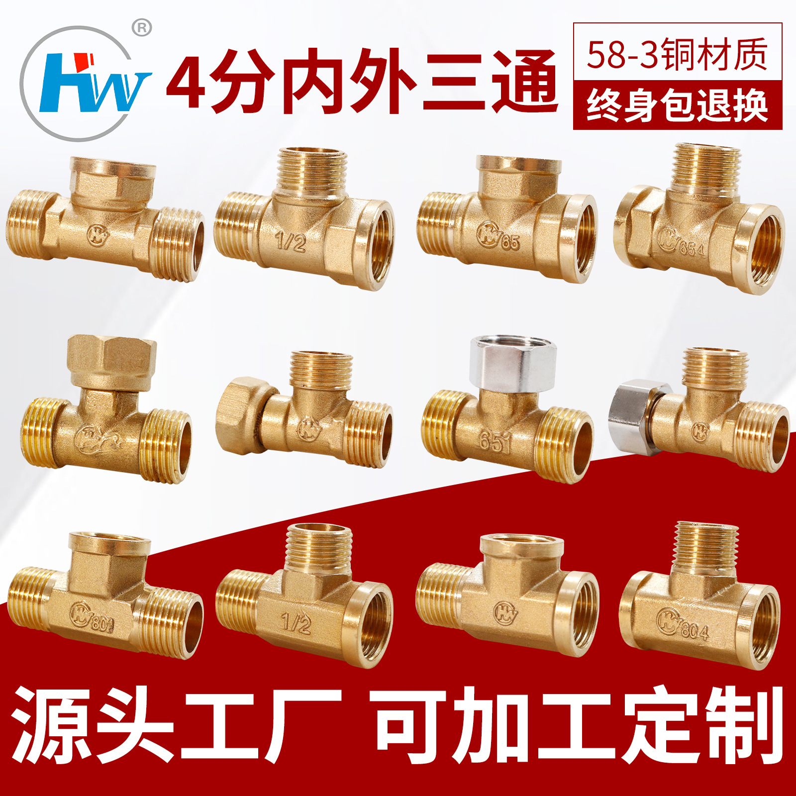 熱売金銅三通精品58-3銅水暖継手4分1/2部品メーカー直販加工