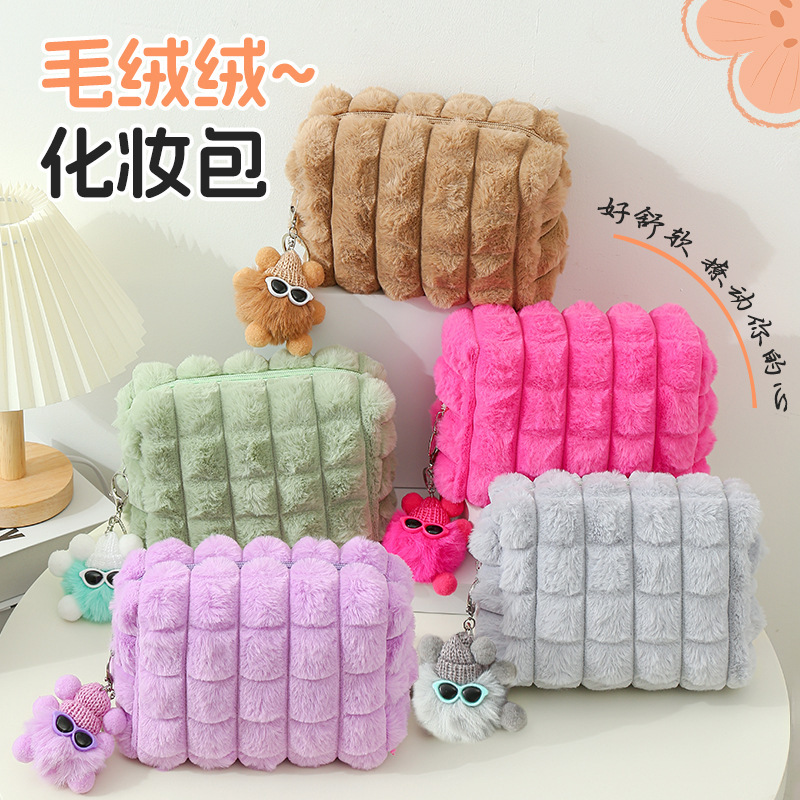 化妆包包毛绒铅笔袋男女中小学生笔袋可爱创意大容量文具盒笔袋