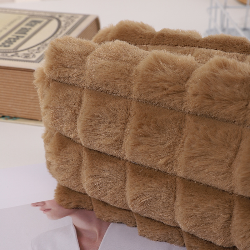 热销时尚简约便捷外出格子毛绒化妆包大容量手拿包高档收纳包ins