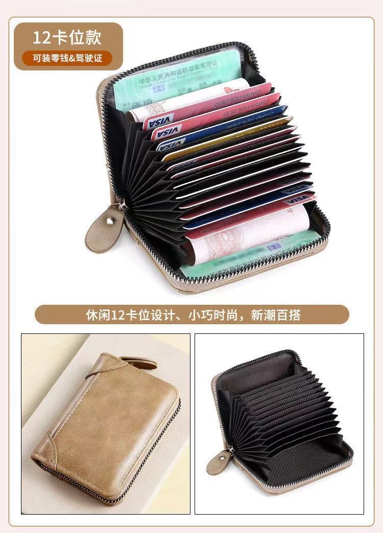 本物ソフト皮大容量運転免許証カバン男盗難防止ブラシ消磁防止マルチカードホルダー女多機能小銭入れ