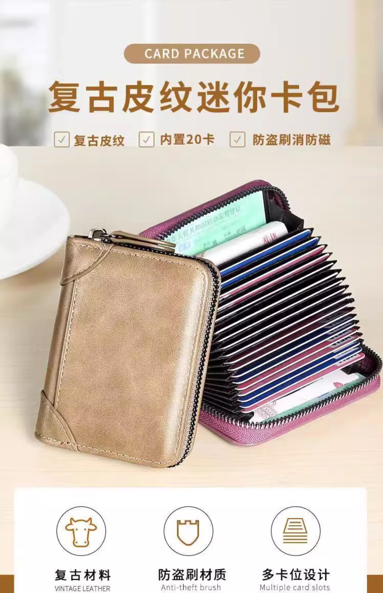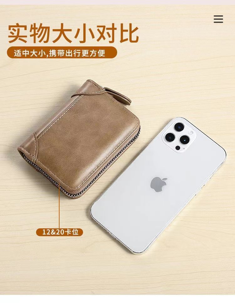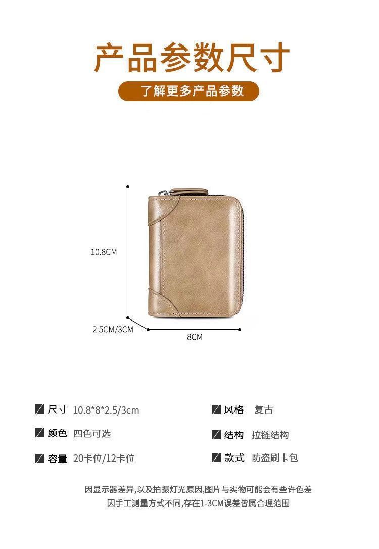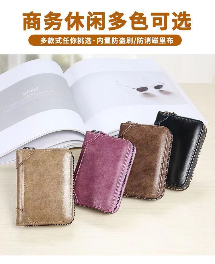 广州皮具厂卡包男士真皮多卡位防消磁拉链小卡片包超薄驾驶证套男