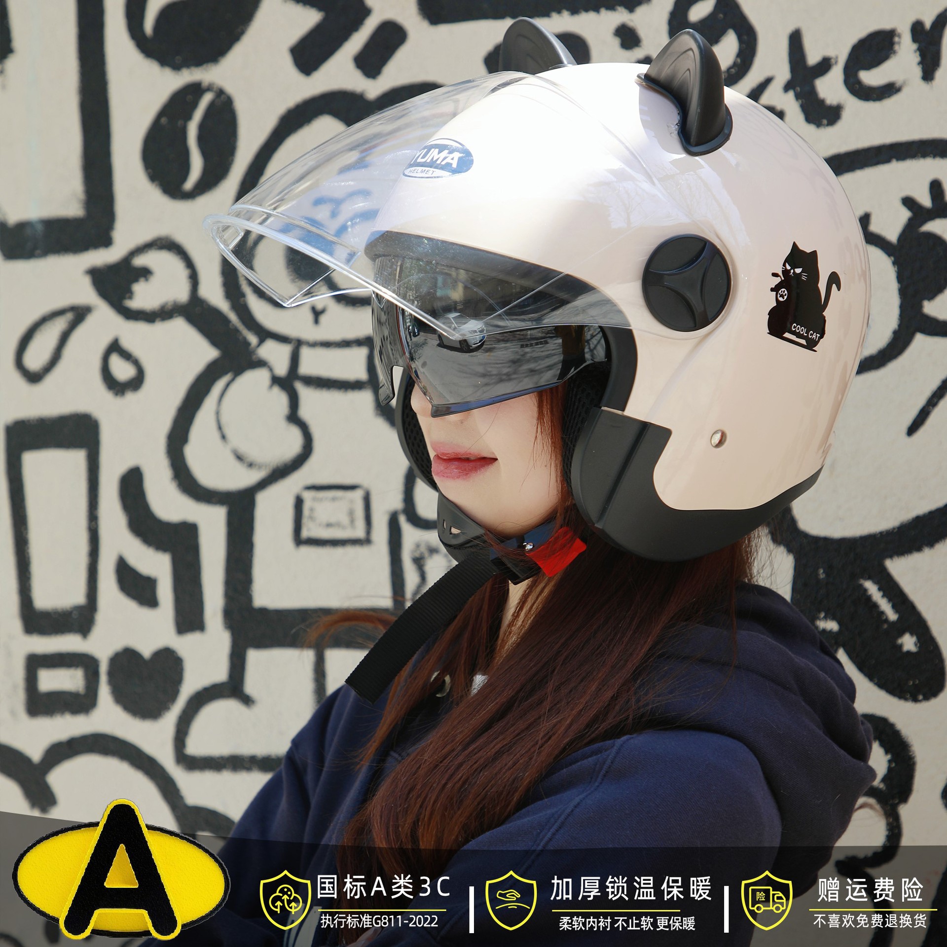 电动车双镜头盔女3C认证头盔摩托车男四季通用防雾防寒保暖安全