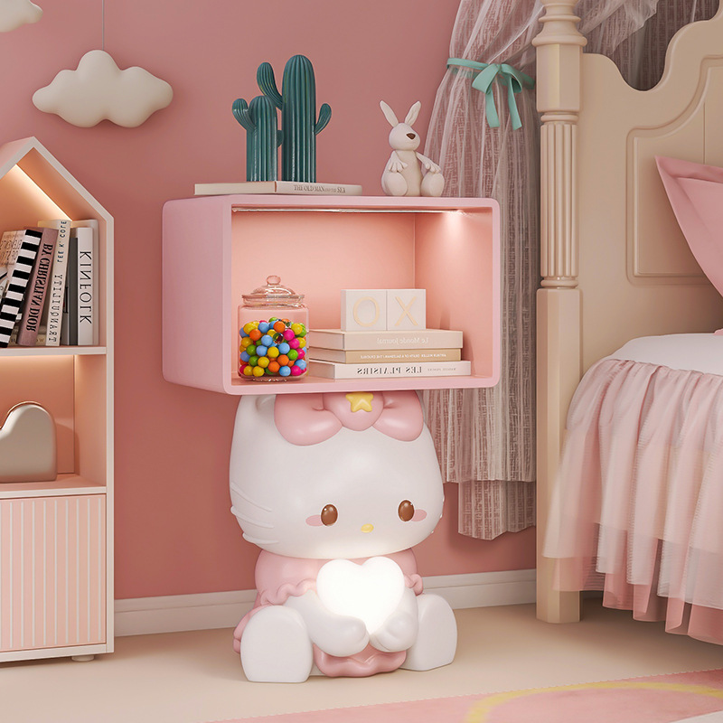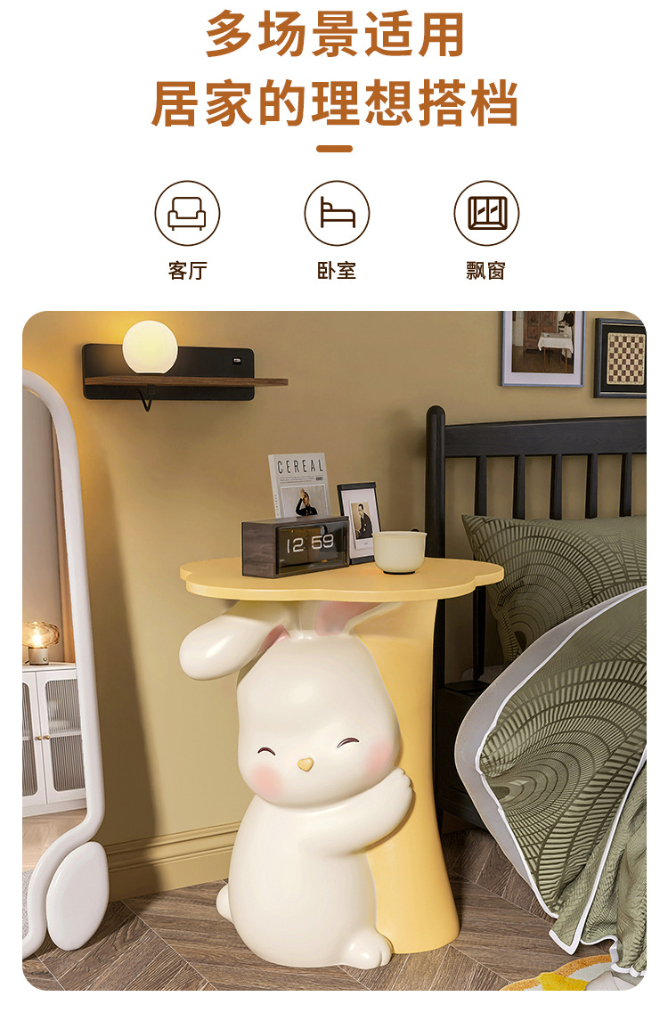 リビングルームの床置きの置物寝室の漫画のウサギの辺のいくつかの創意クリーム風テレビのソファーの横の物置棚の装飾