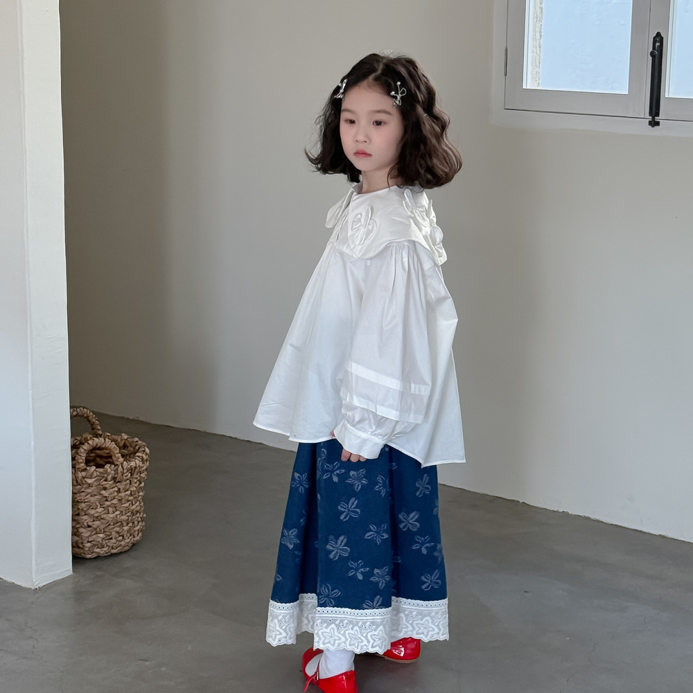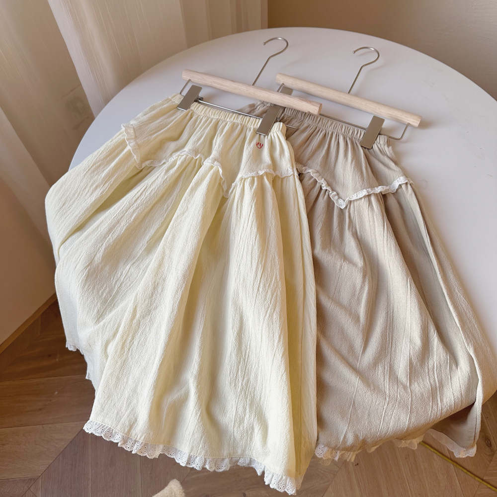 子供用スカート 2026秋 女の子用 韓国風 刺繍入りレーススカート 女の子用ベビー向け万能無地スカート モー・シャオ・モン