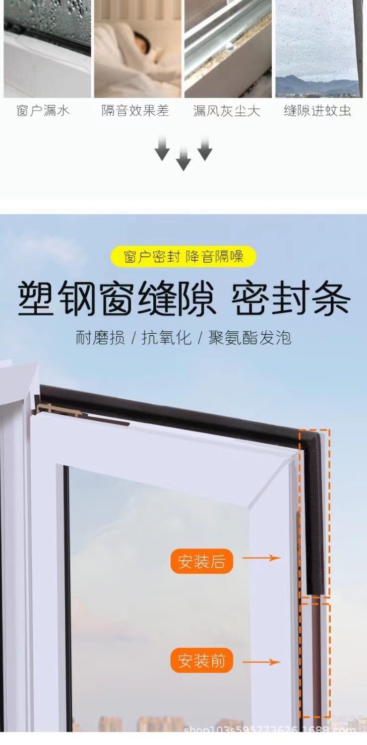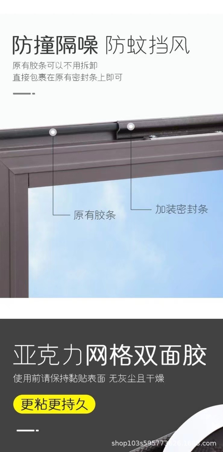 窗户密封条断桥铝平开窗塑钢门窗防漏风缝隙胶条冬季挡风隔音密封