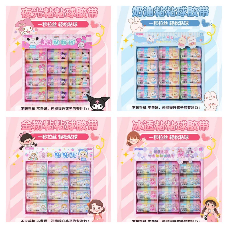 金粉粘粘球胶带珠光奶油粉黏黏球一秒拉丝冰透胶带学生减压玩具