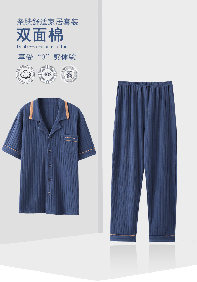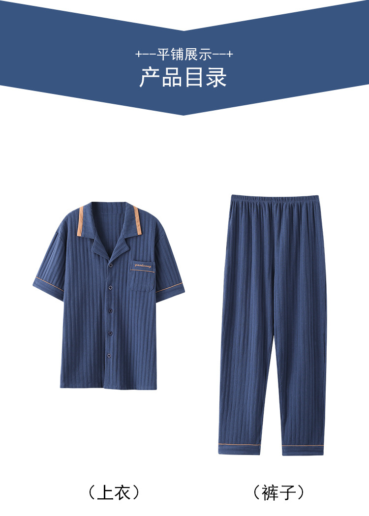 男性パジャマ男性夏純綿半袖長ズボンカーディガン