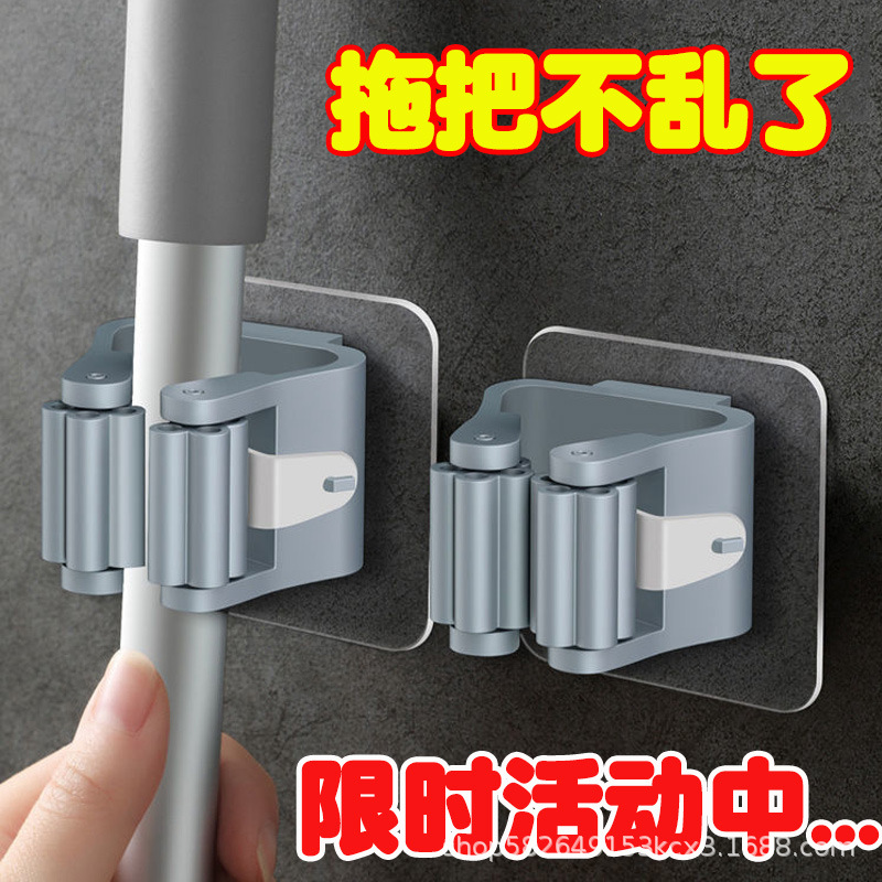 強力モップクリップフック棚無痕貼り卸売りモップ掛け棚穴なし壁掛けモップ留め具