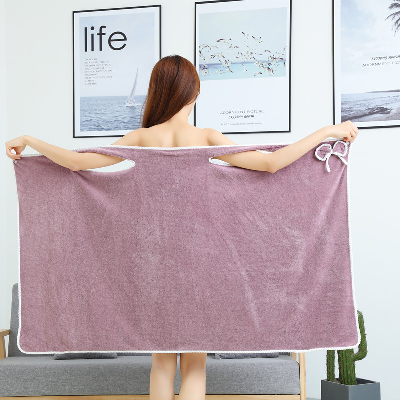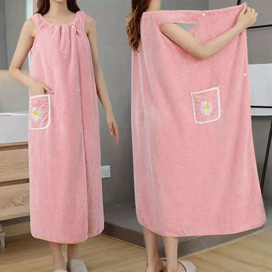 跨境珊瑚绒浴巾批发柔软加厚吸水成人家用女士口袋可穿戴吊带浴裙