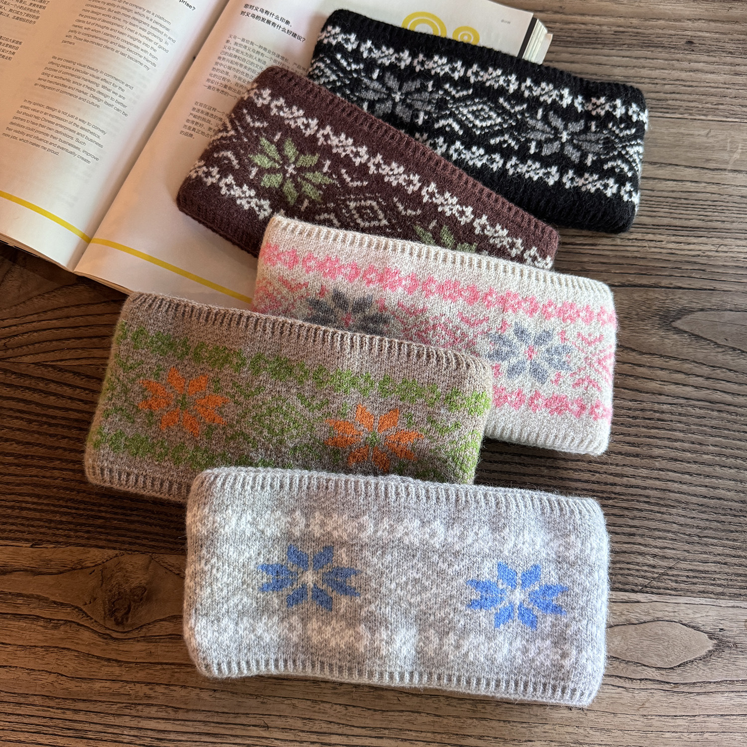 秋冬新款宽边保暖毛线发带时尚复古民族风头套外出护额头防风发箍