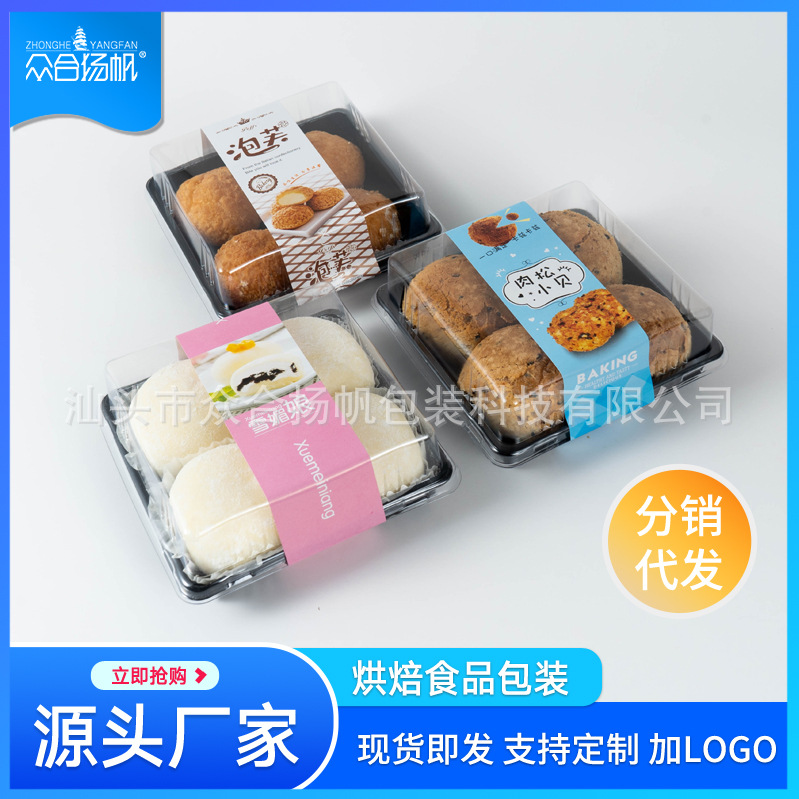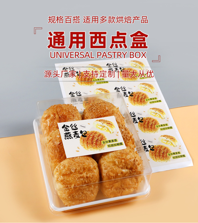 一次性烘焙餐包打包盒梯形底托透明吸塑盒早餐面包酥饼类烘焙包装