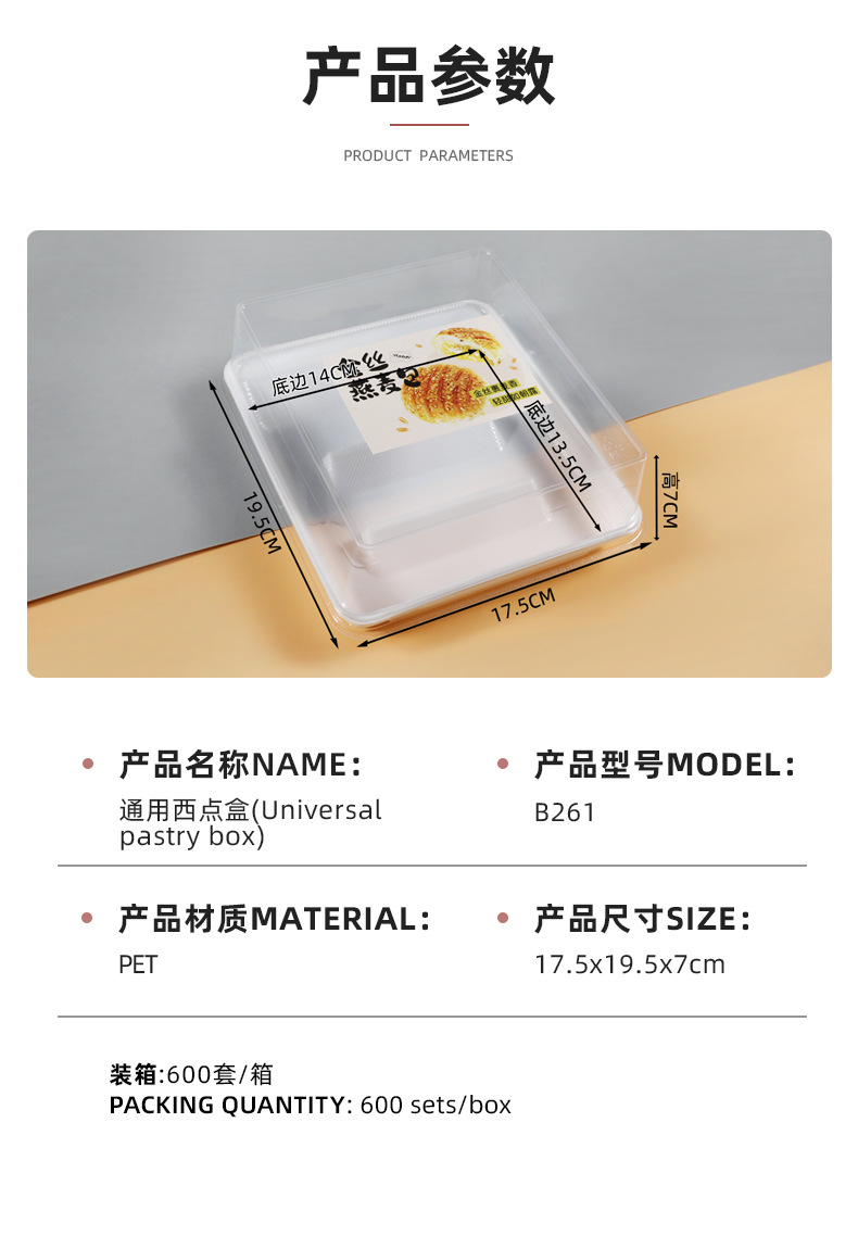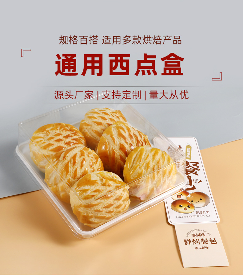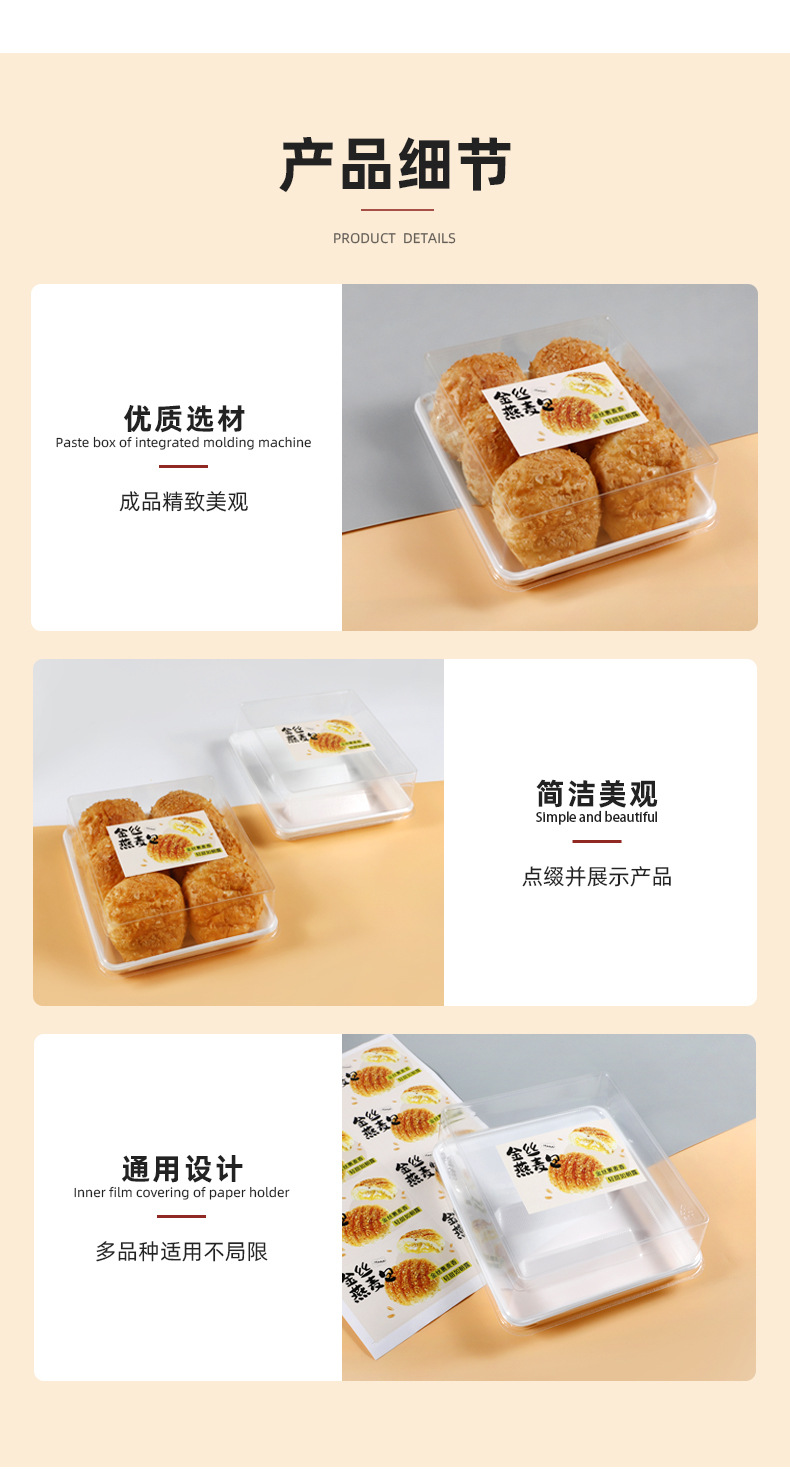 使い捨て大型スイスロール包装箱、正方形透明ブリスターボックス、スノーフレークパイ、パイナップルパイ、餅包装箱