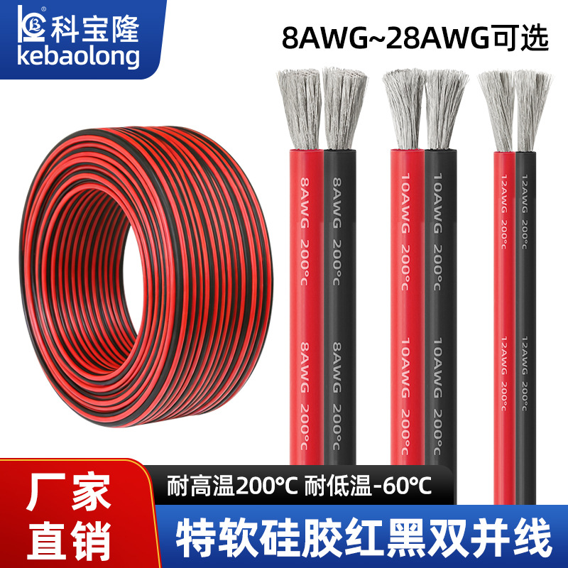 特軟シリカゲル電子線耐高温200度新エネルギー航空モデルリチウム電池赤黒平行二重合併電源コード