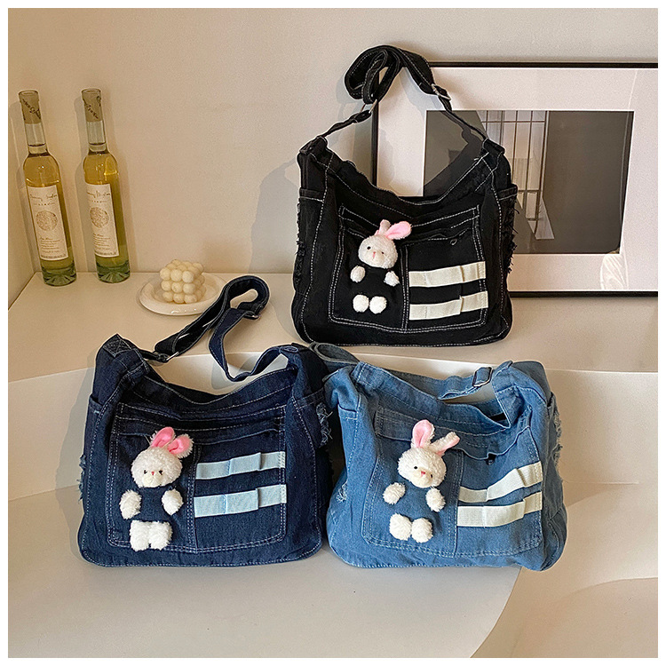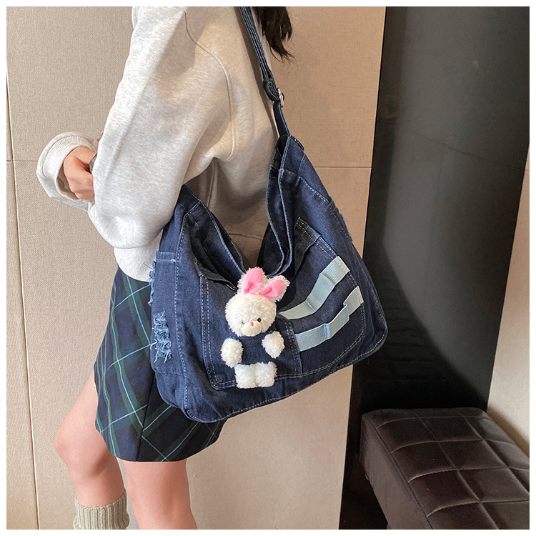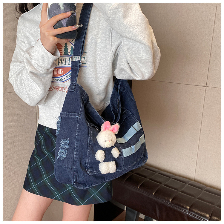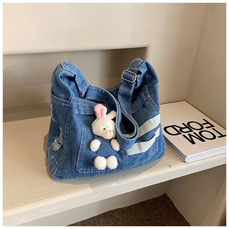 春新デニムブルーショルダーバッグレディースカジュアル大容量トートバッグ中学生かばん通勤キャンバスバッグ