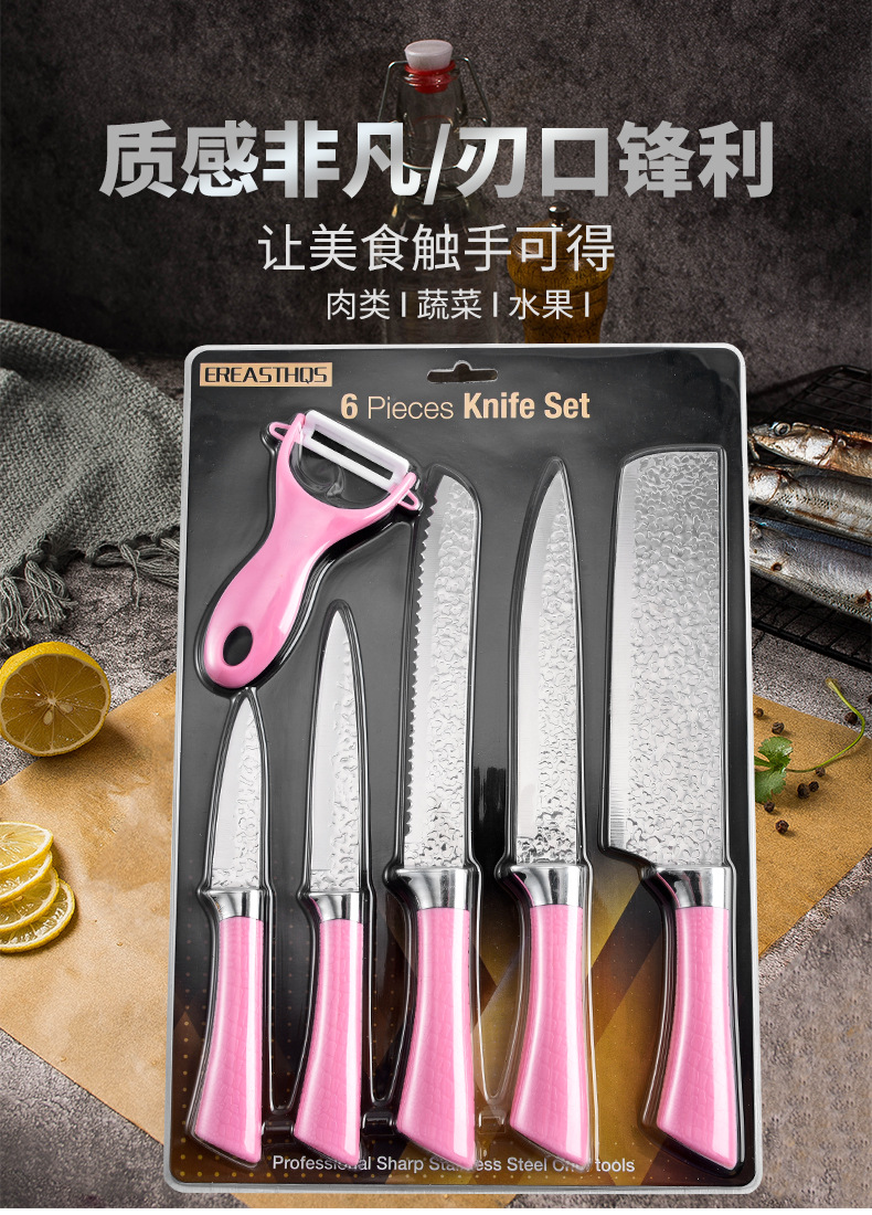 新商品のカードの調理器具セットのハンマーの紋様の刃物のプラスチックの6セットのステンレスの調理器具の馬蹄の柄のハンマーの紋様の6セット