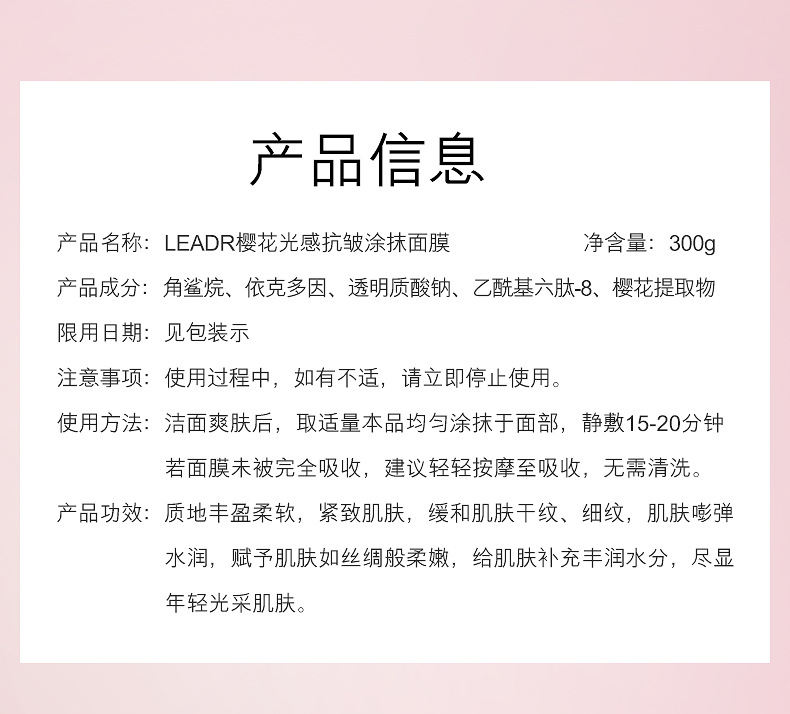 女神の美しさ桜の光感抗シワ塗布マスクは水を補給して保湿します。