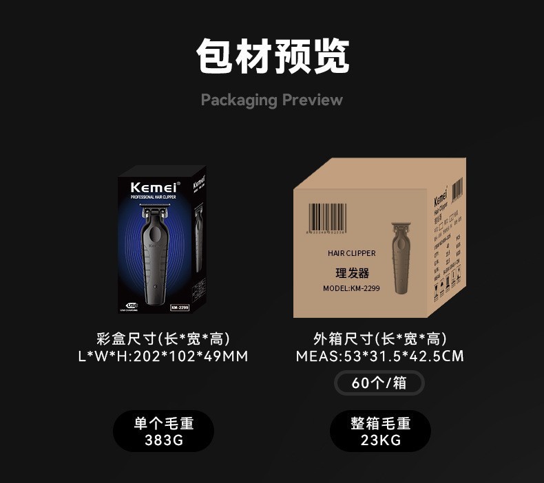 科美/kemei粉末冶金ヘッド電気バリカン電気バリカンKM-2299ヘッド彫刻バリカン理髪器