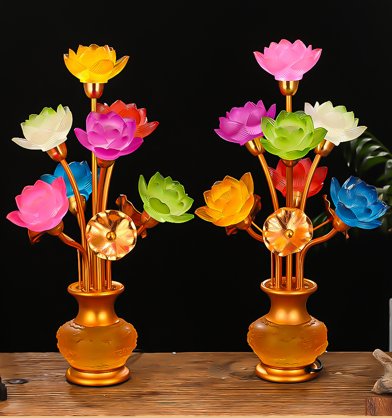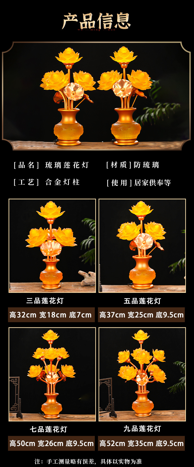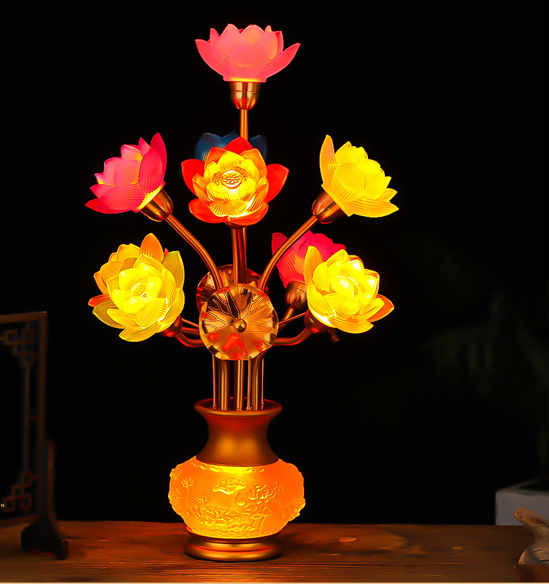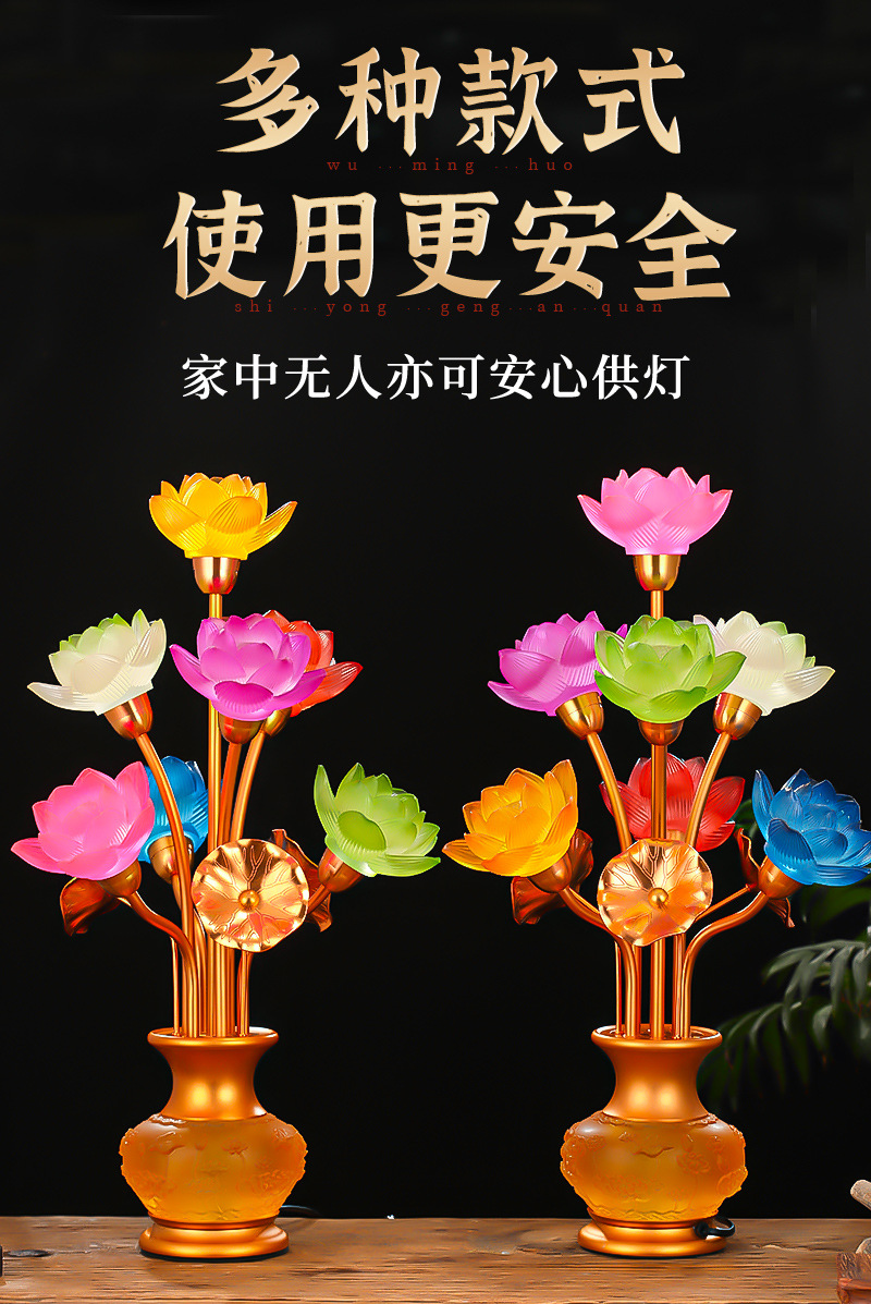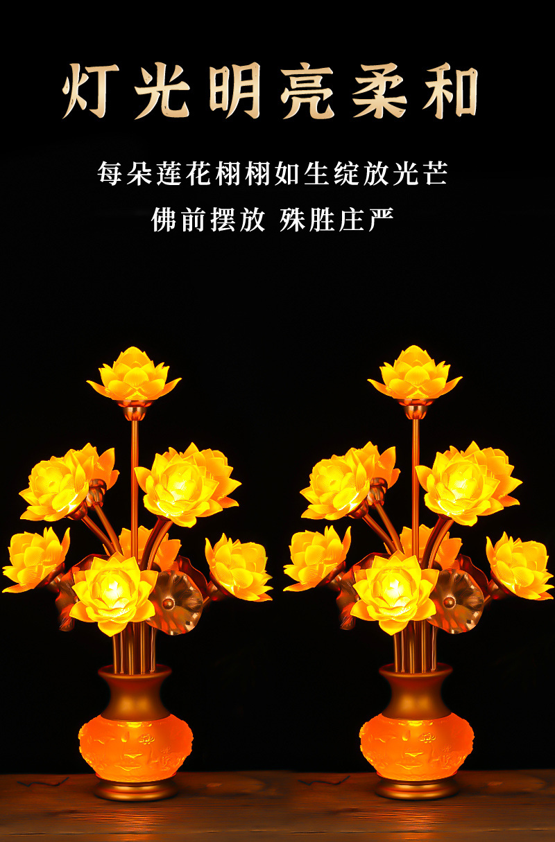 新商品九品蓮花灯ledランプ七品瑠璃供灯電気仏前長明灯観音灯供仏貢灯