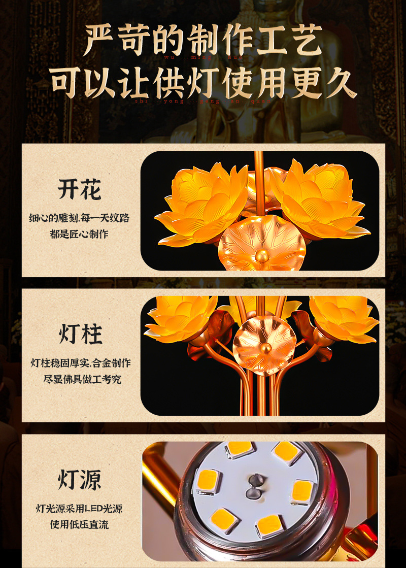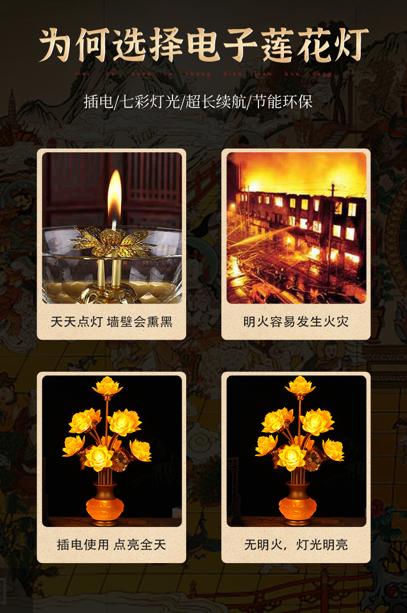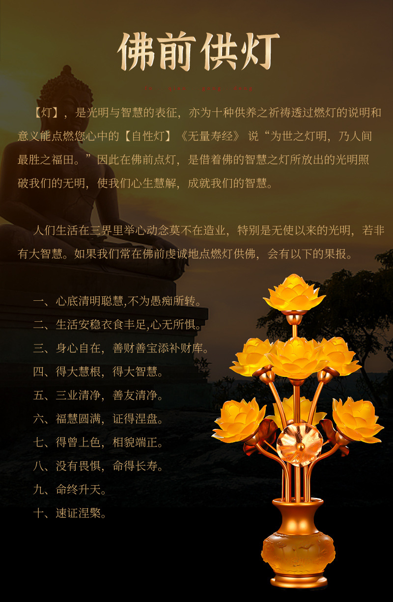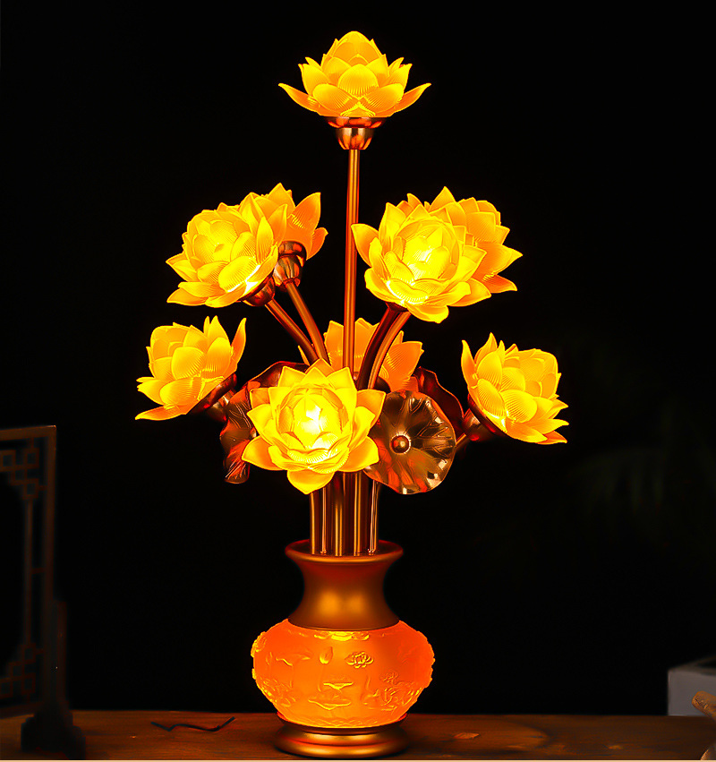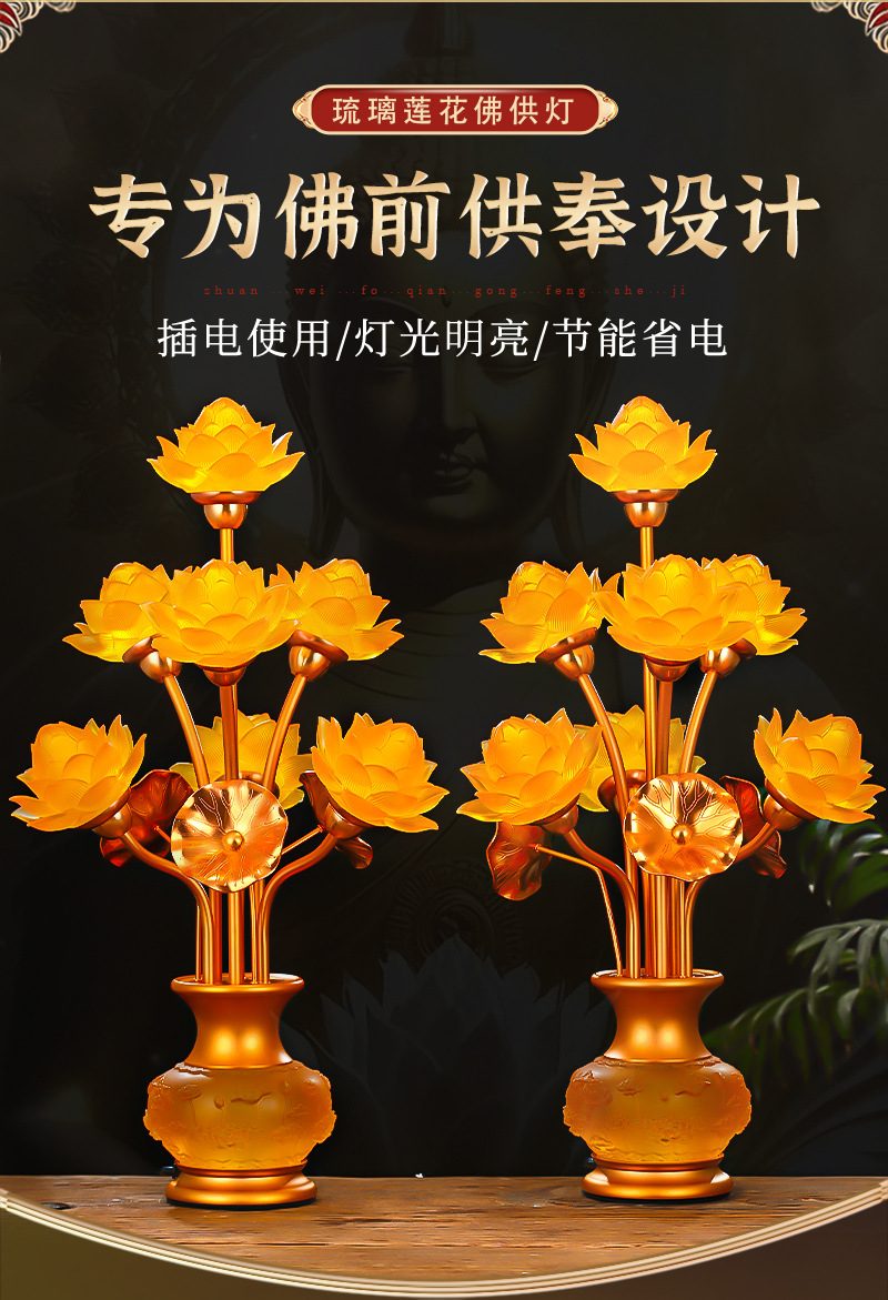 新商品九品蓮花灯ledランプ七品瑠璃供灯電気仏前長明灯観音灯供仏貢灯