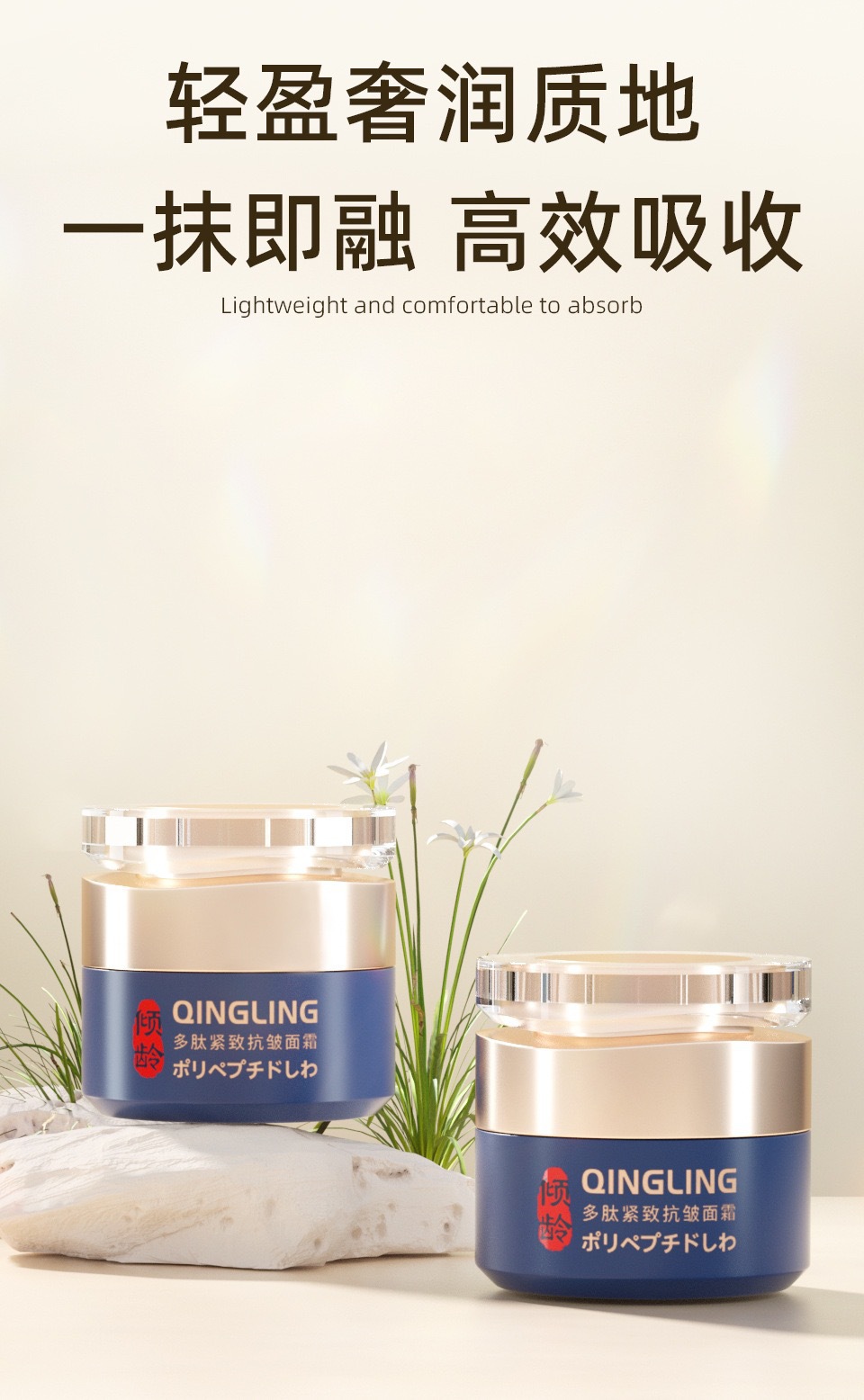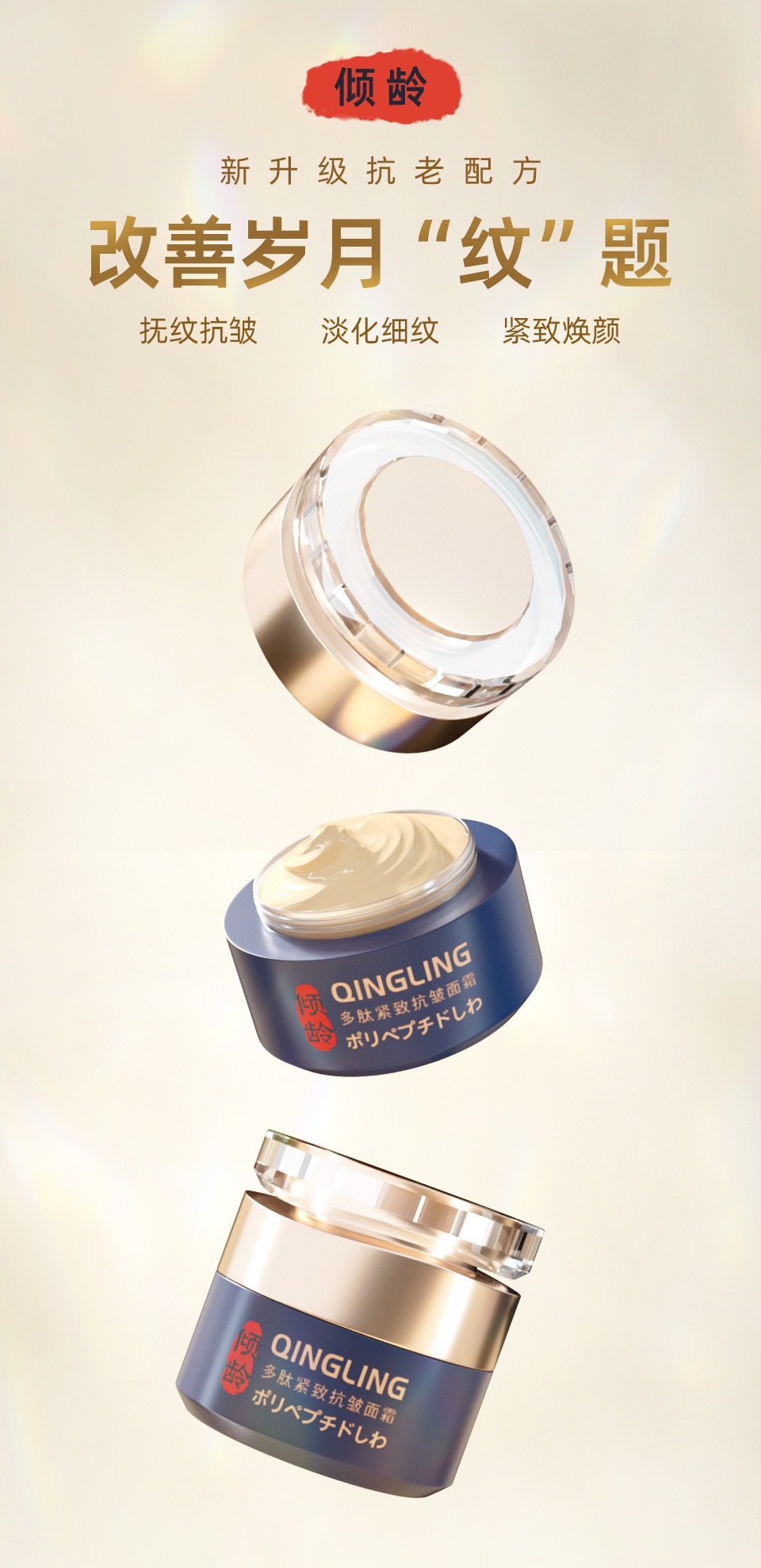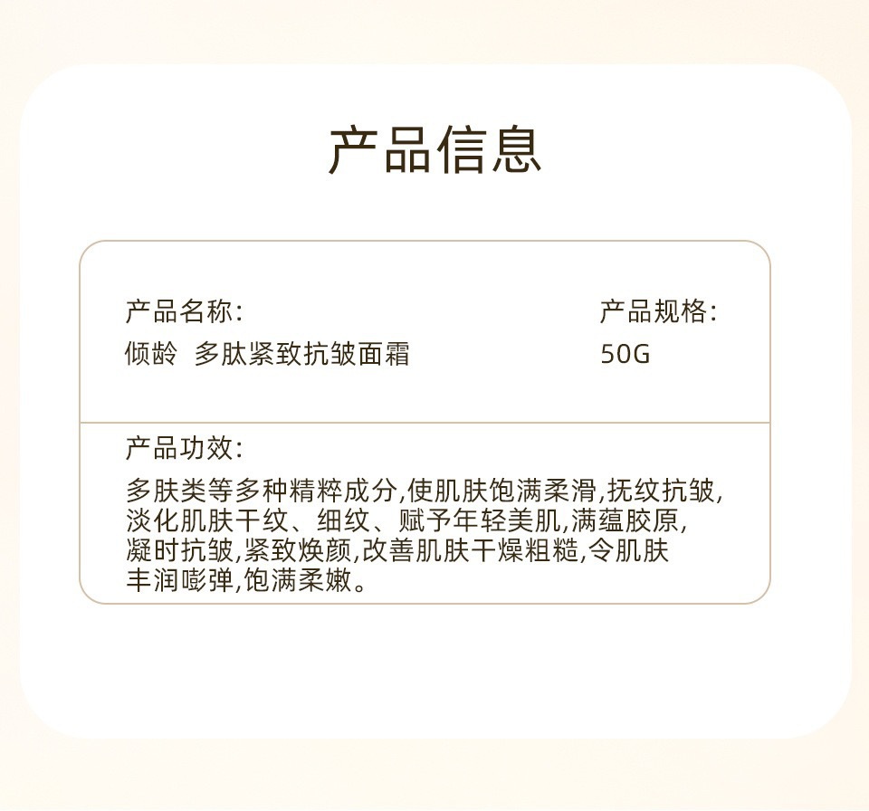 倾龄多肽紧致抗皱面霜 提拉紧致淡化细纹嫩肤霜男女通用批代发