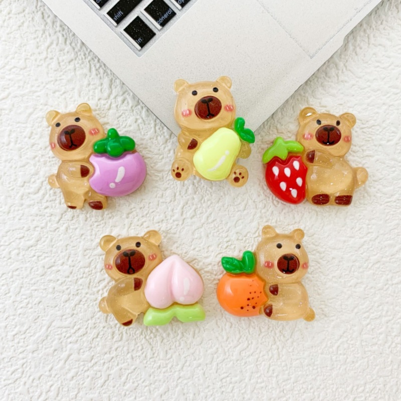 創意的な透色アニメは果物のカピバラ樹脂の部品を抱いています。