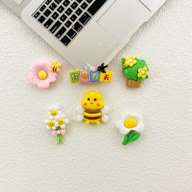 明るい面の漫画の小さい花のミツバチの木のシリーズのdiy樹脂の部品のクリームのゴムの携帯電話のケースの髪飾りのヘアピンのシール