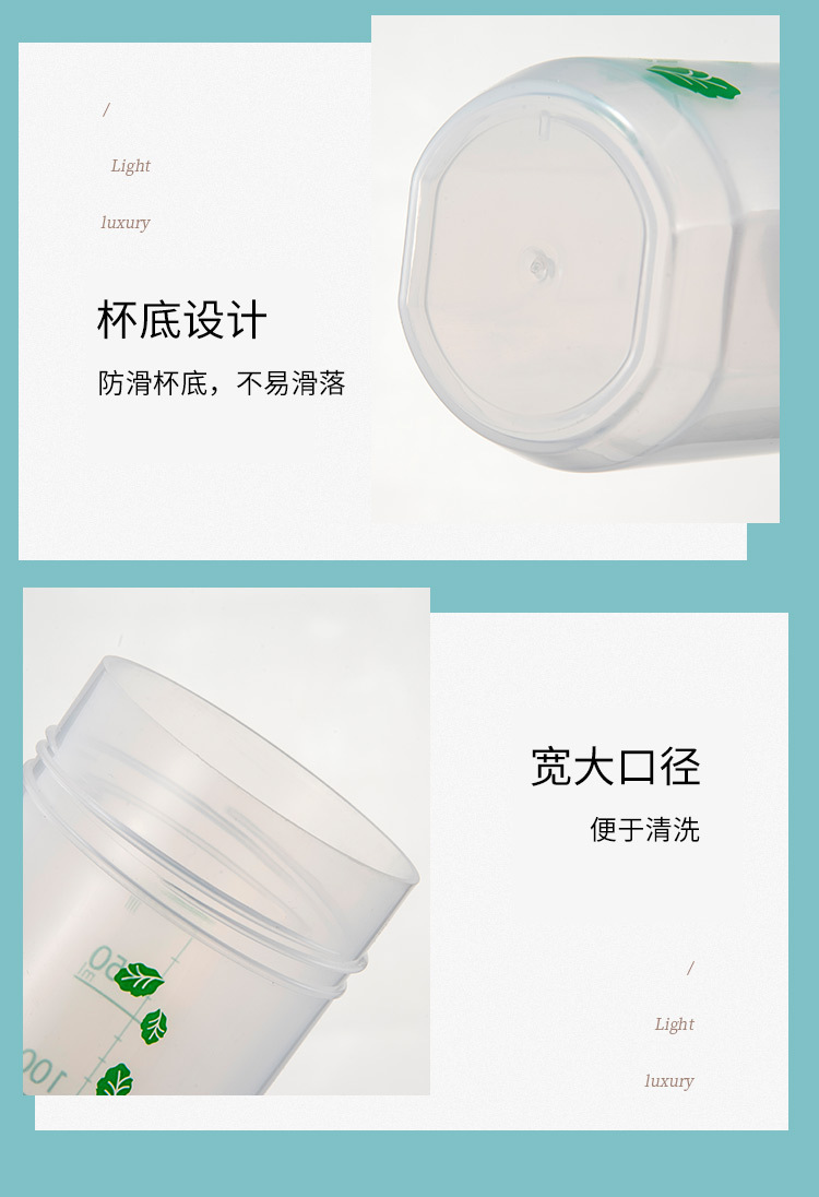 Likelai シンプルなポータブルカップ プロテインパウダーシェイクカップ 大口径ストレート透明 PP プラスチックスケールカップ